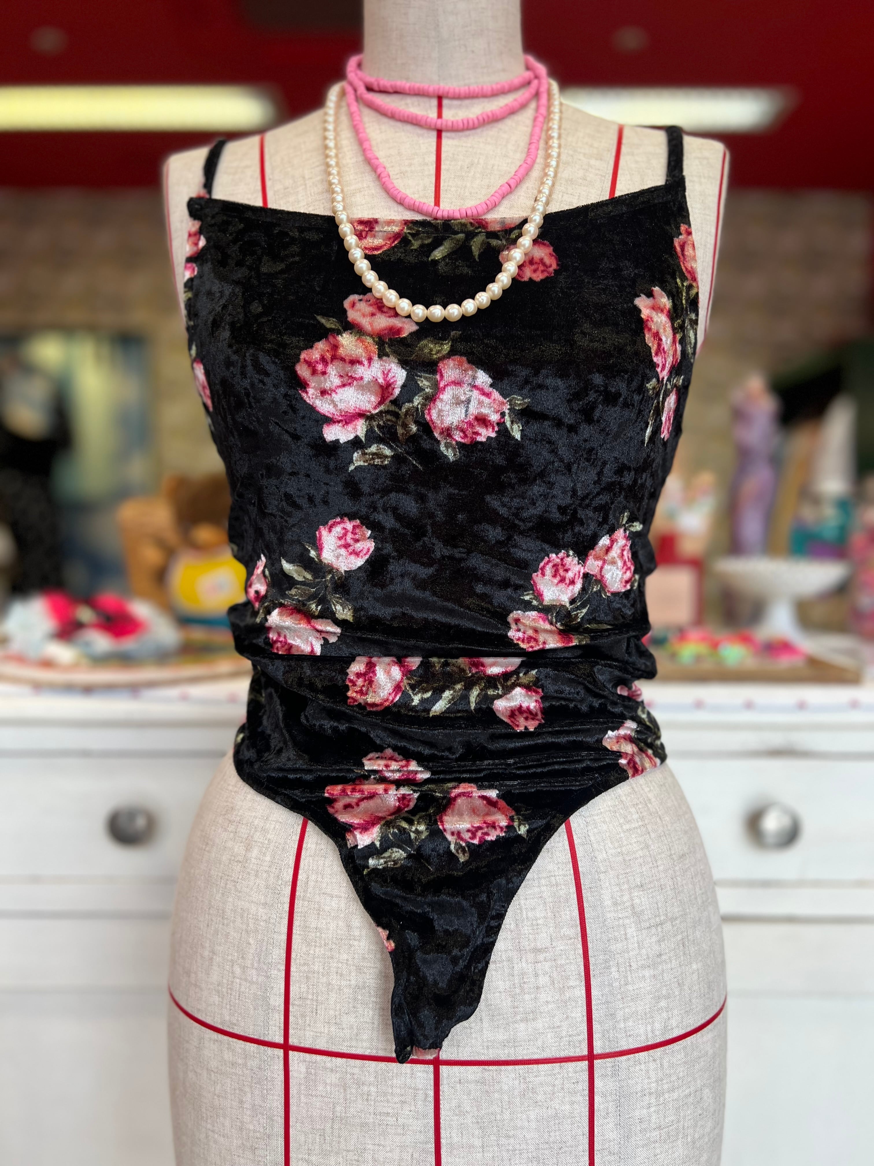 ぴんく薔薇のベロアボディスーツ