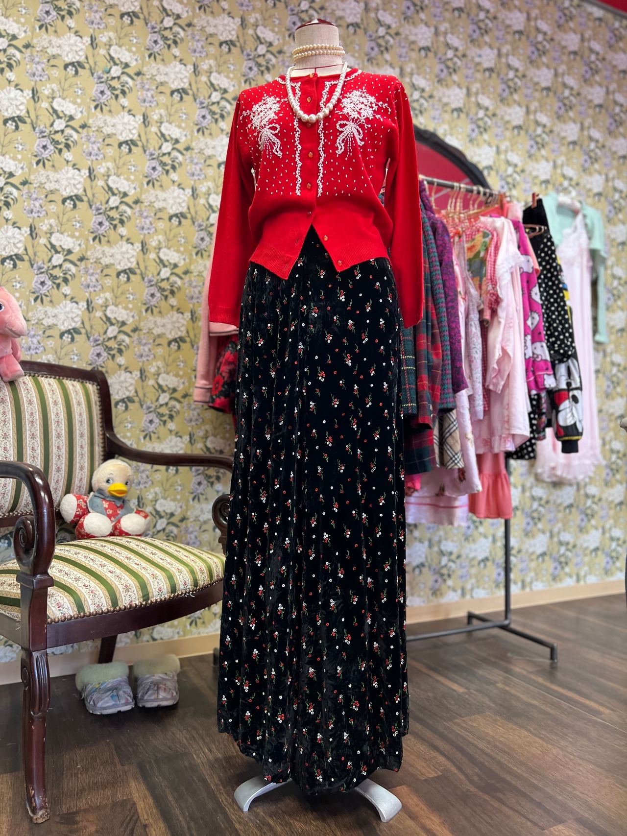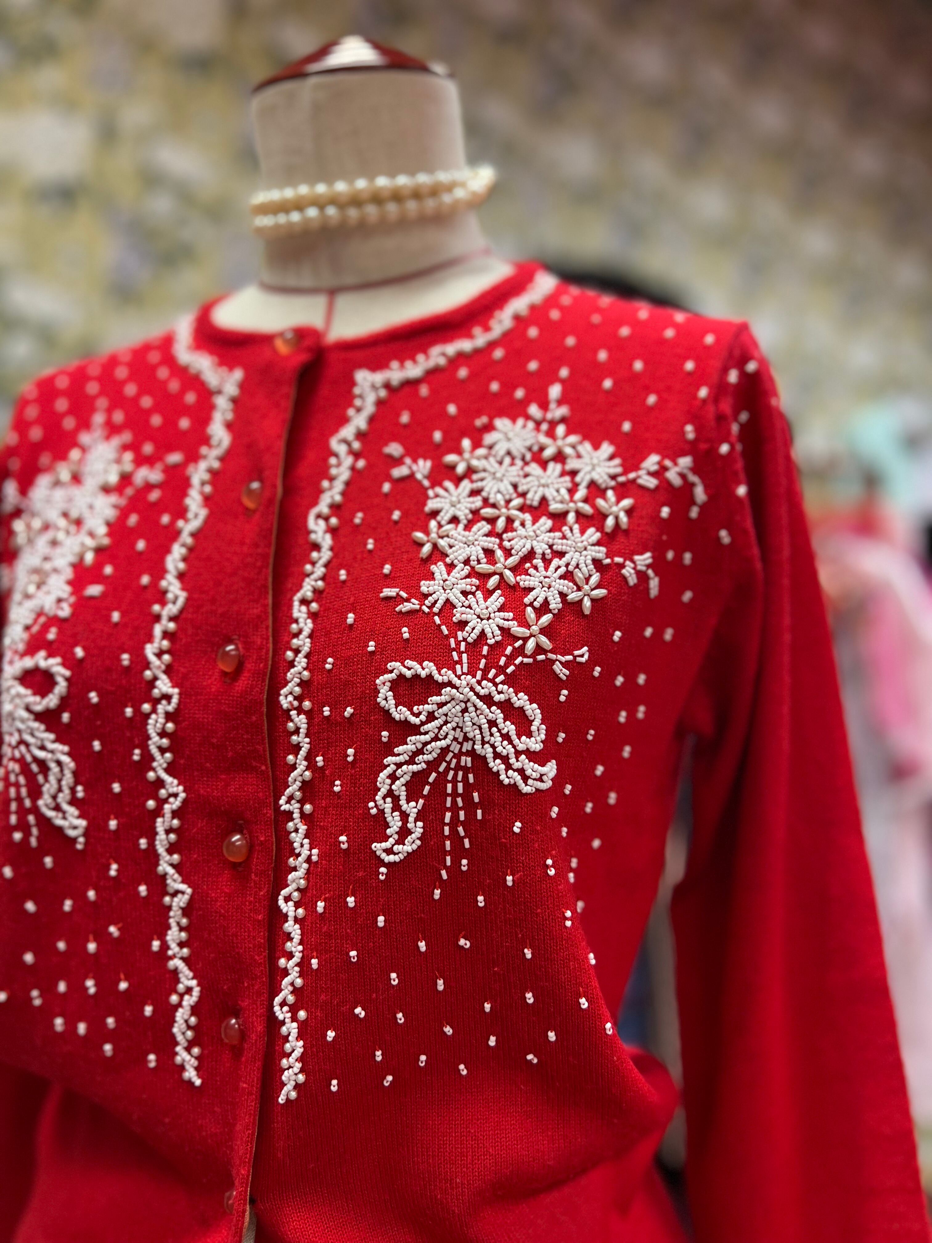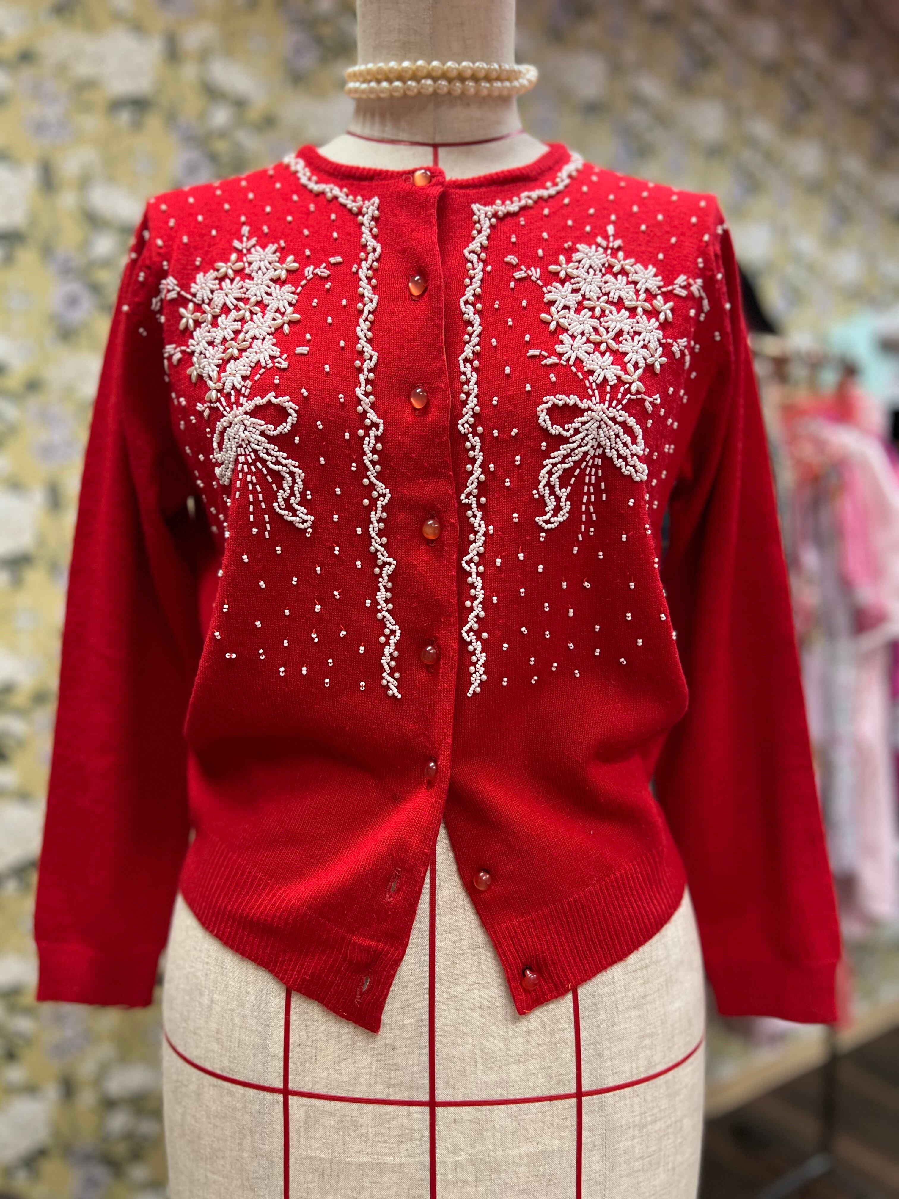 ホワイトビーズブーケのレトロカーディガン