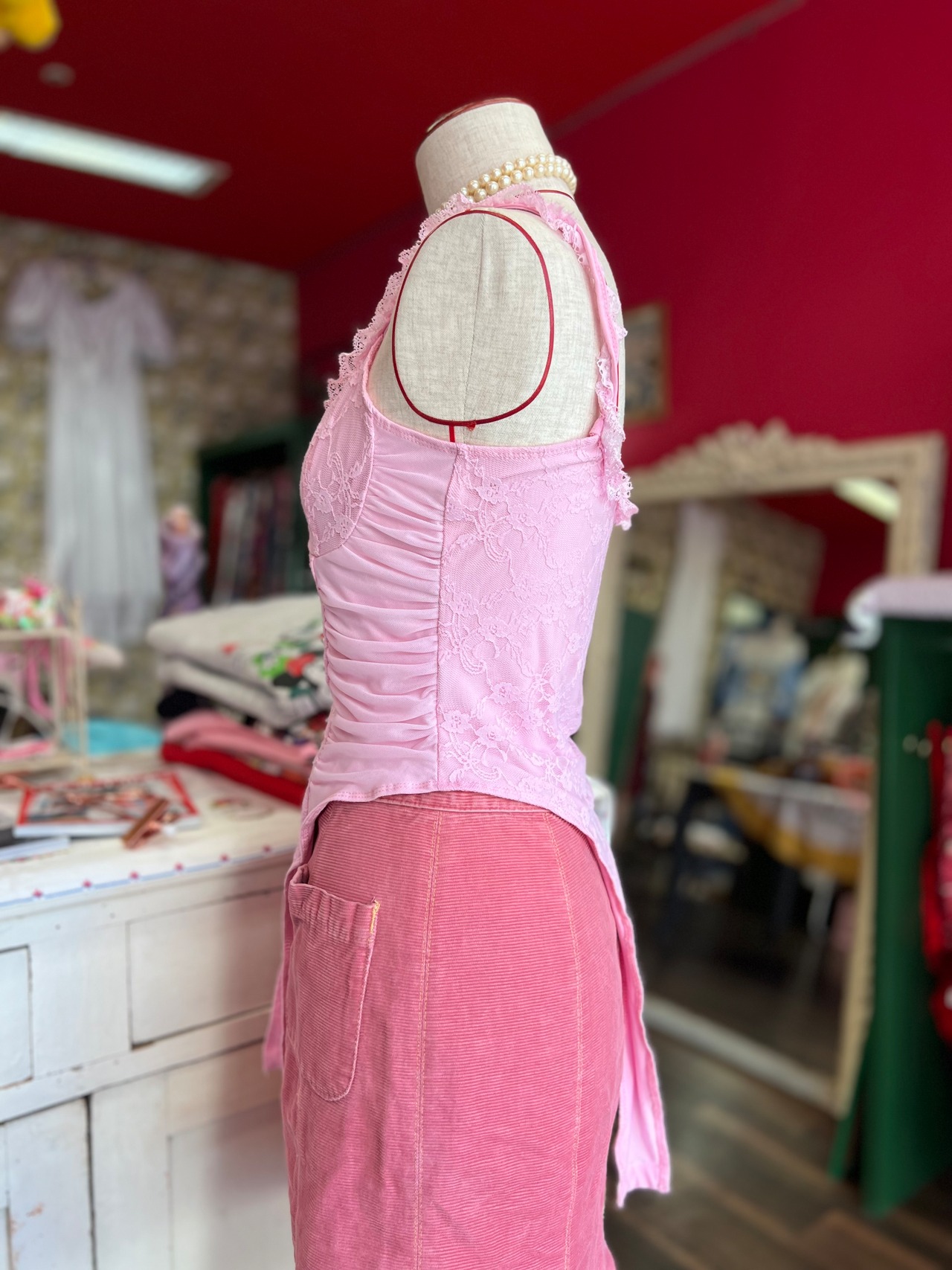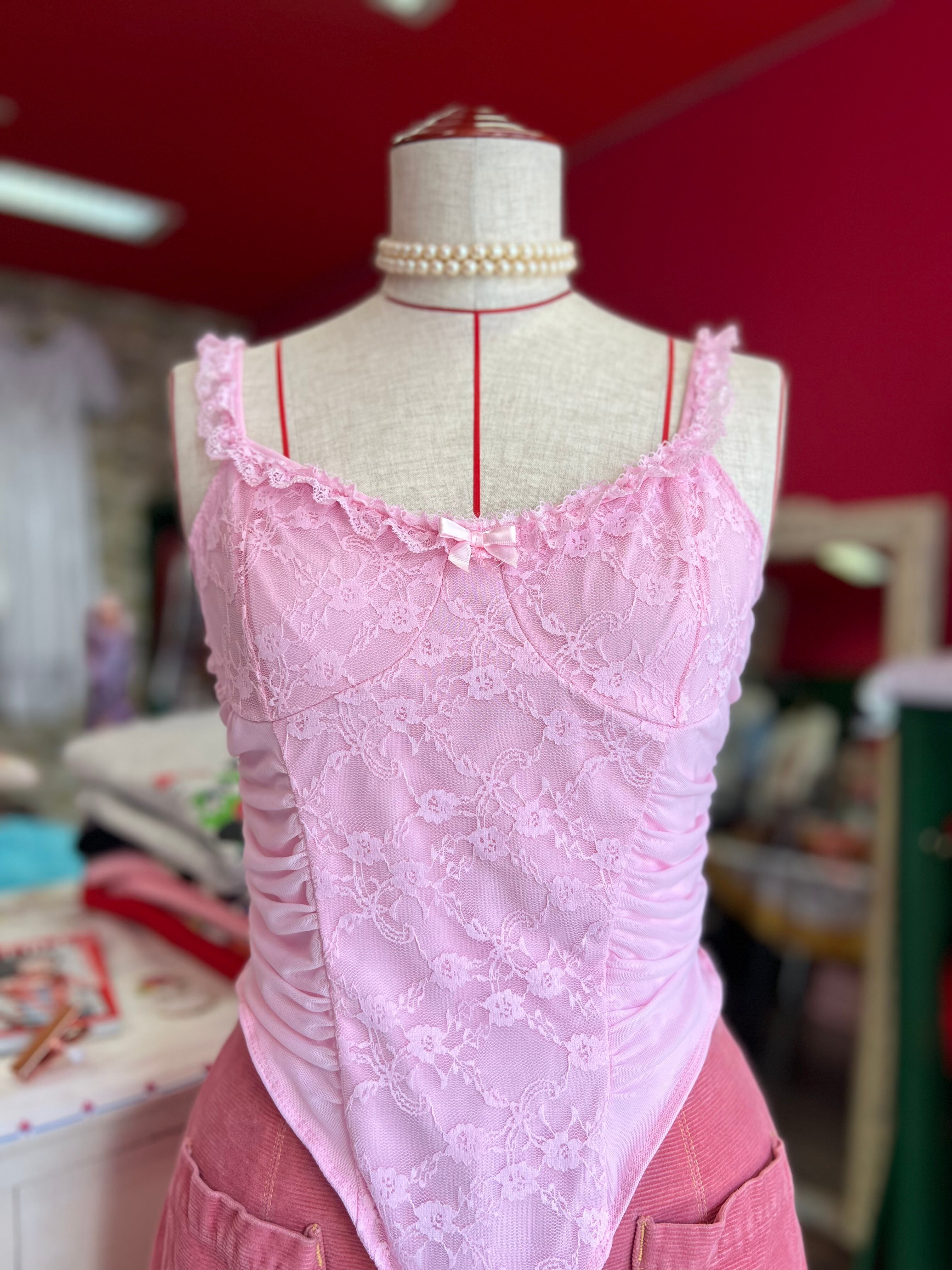 ぴんくのレースボディスーツ