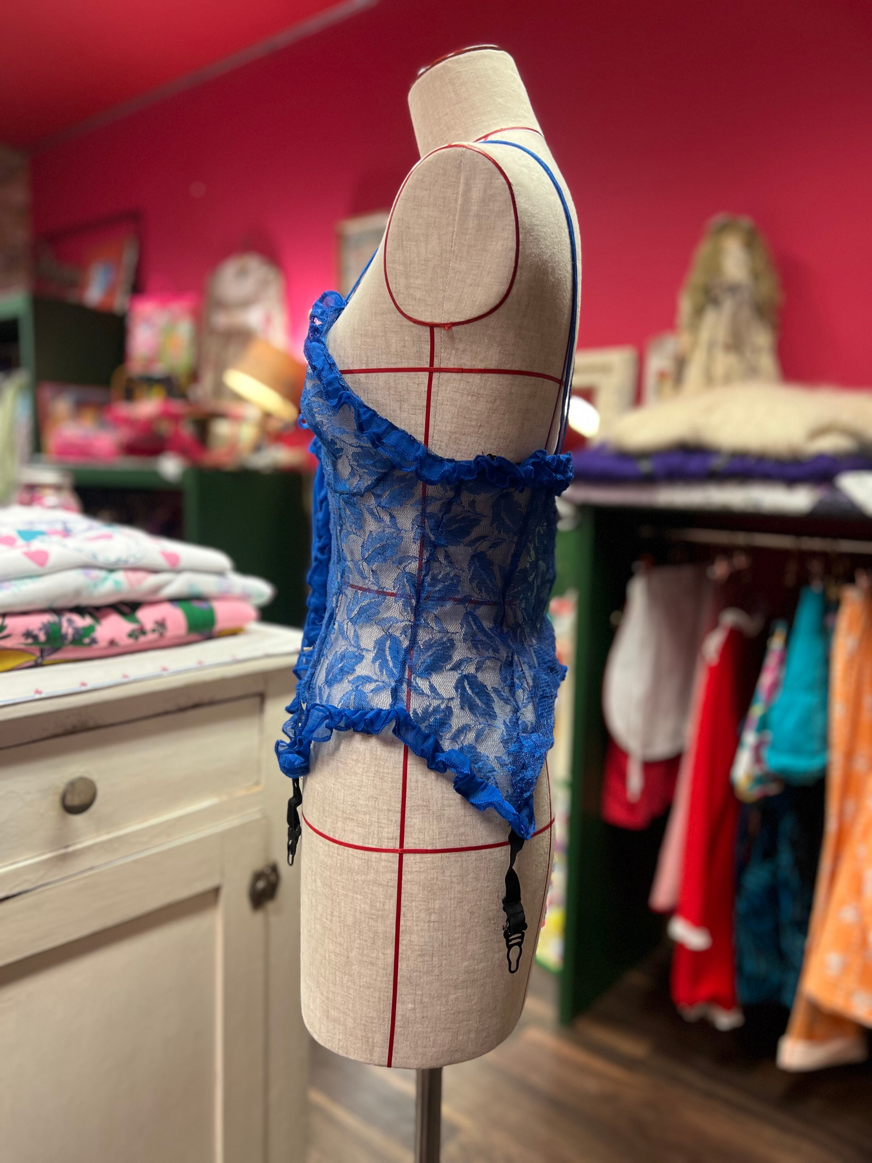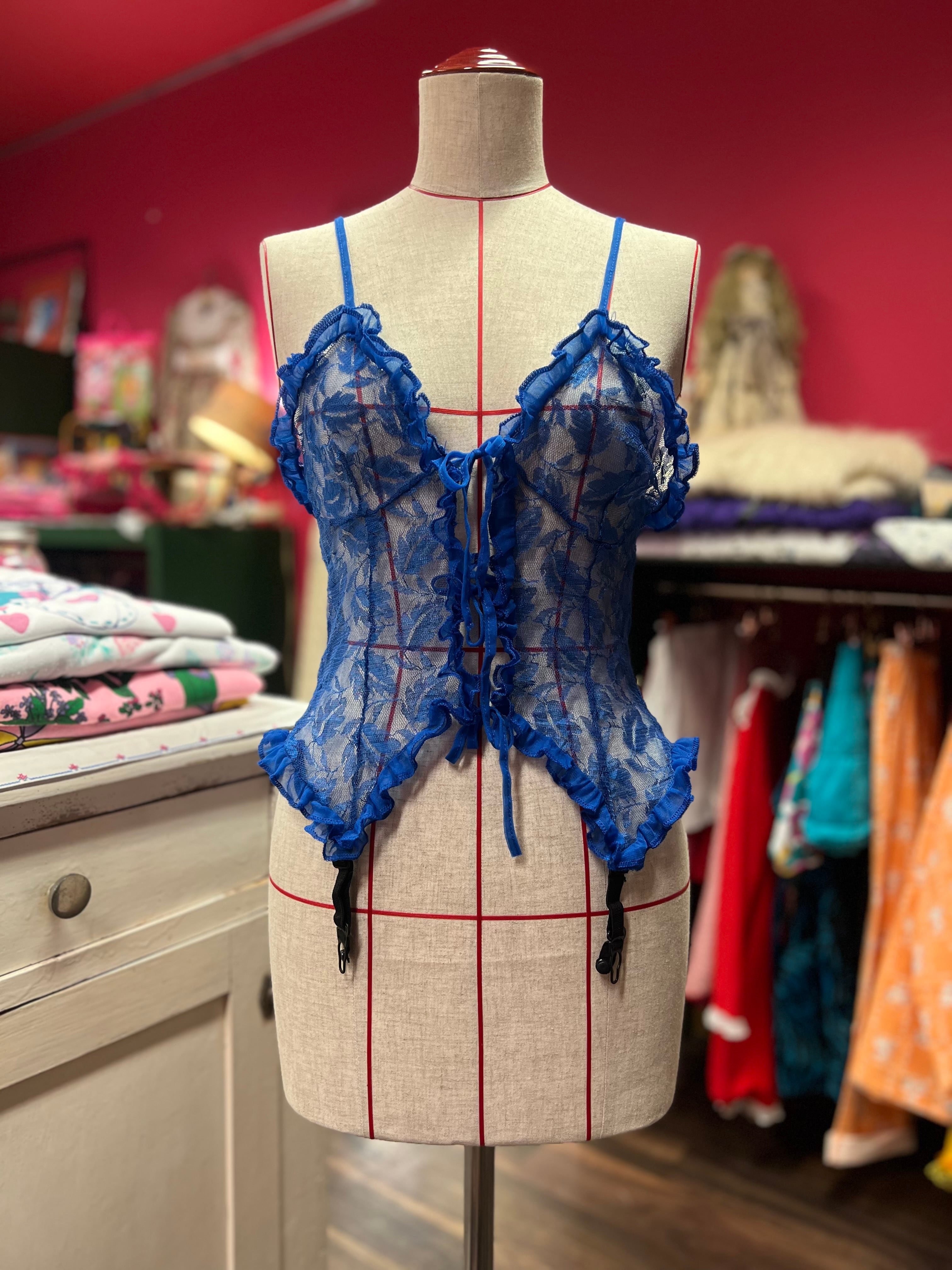 青いレースのランジェリーキャミソール