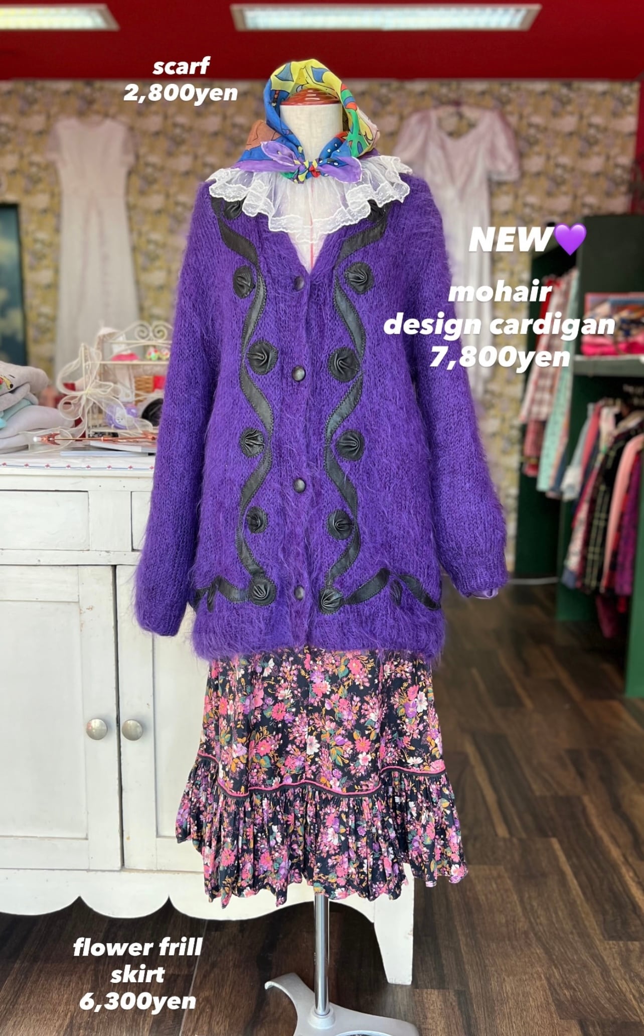 パープルモヘアカーディガン