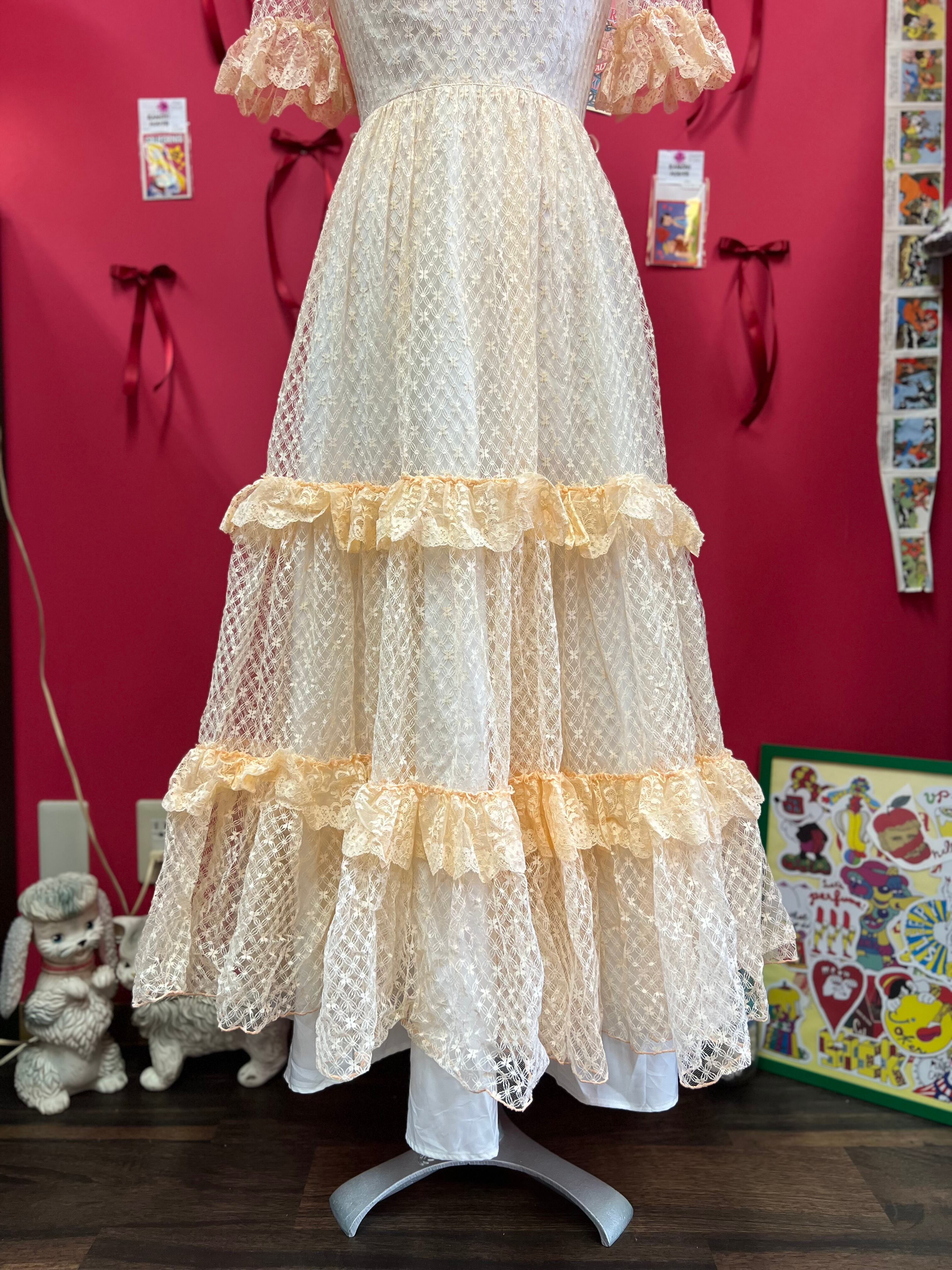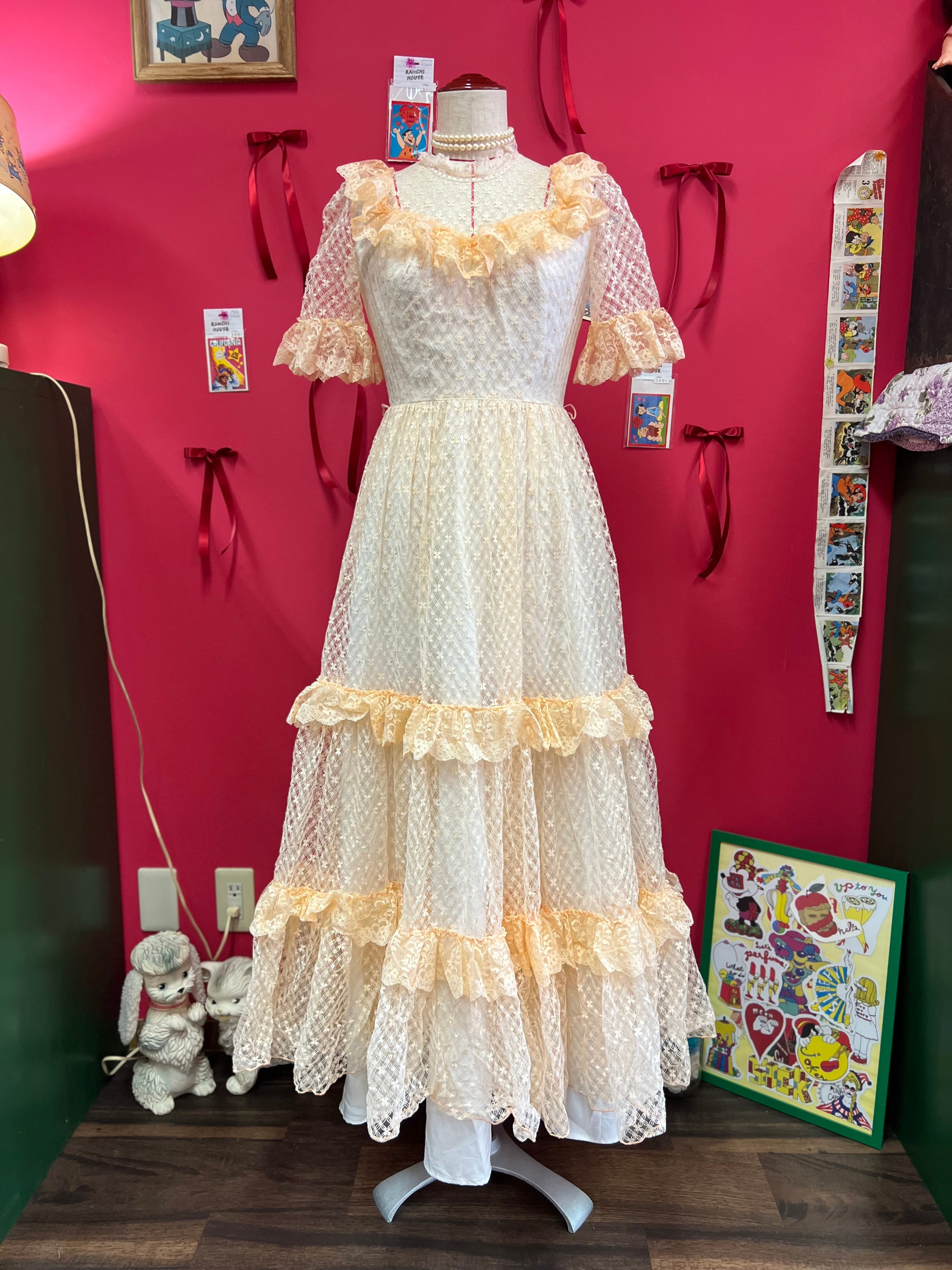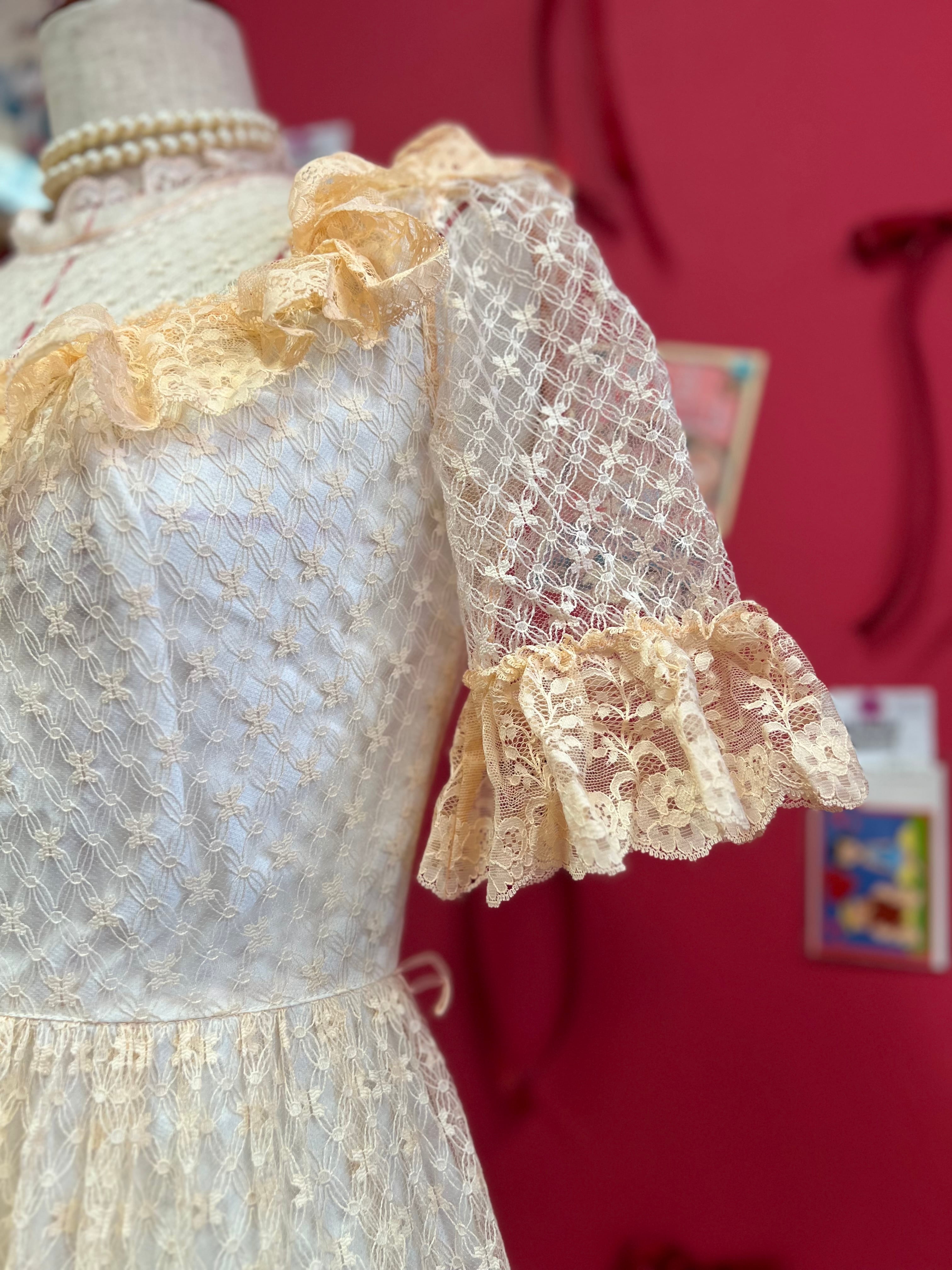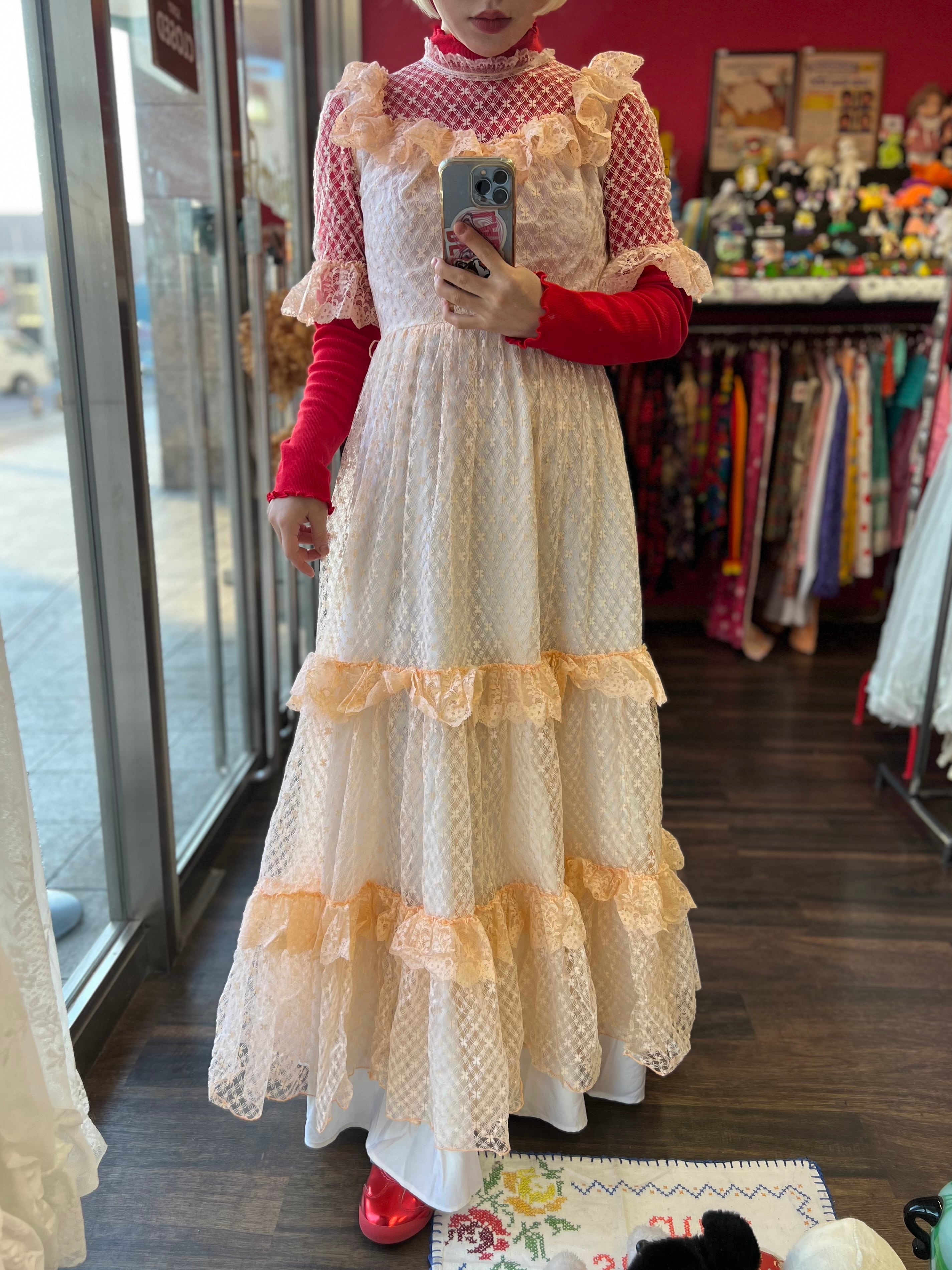 パーティーに出かけたくなるペールオレンジのヴィンテージレースドレス