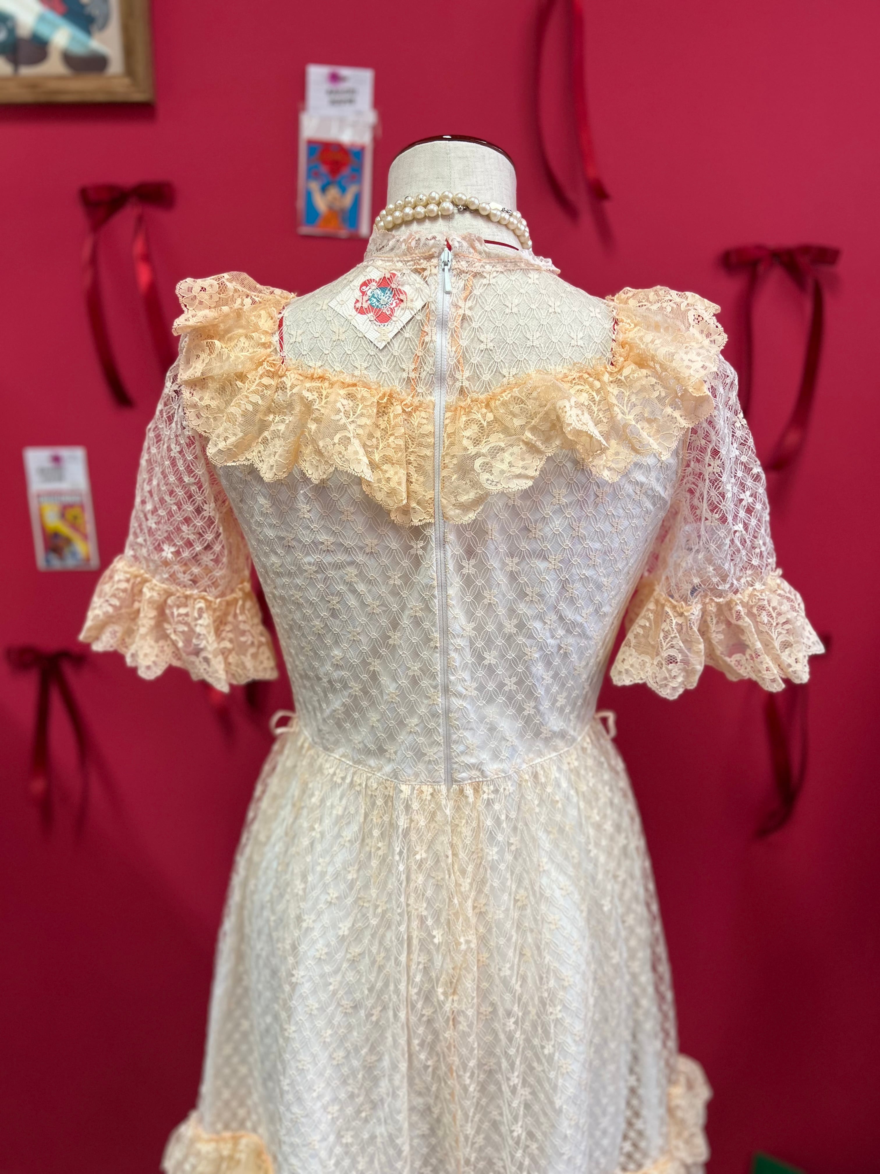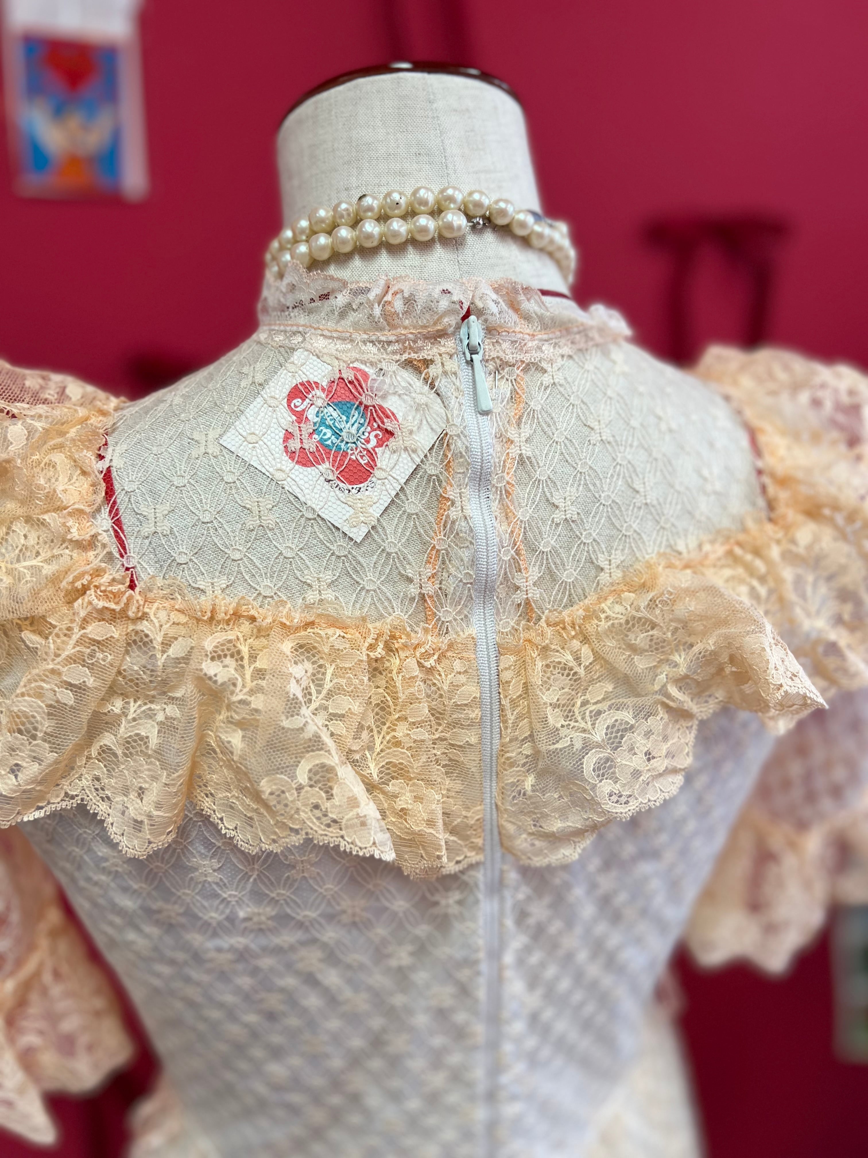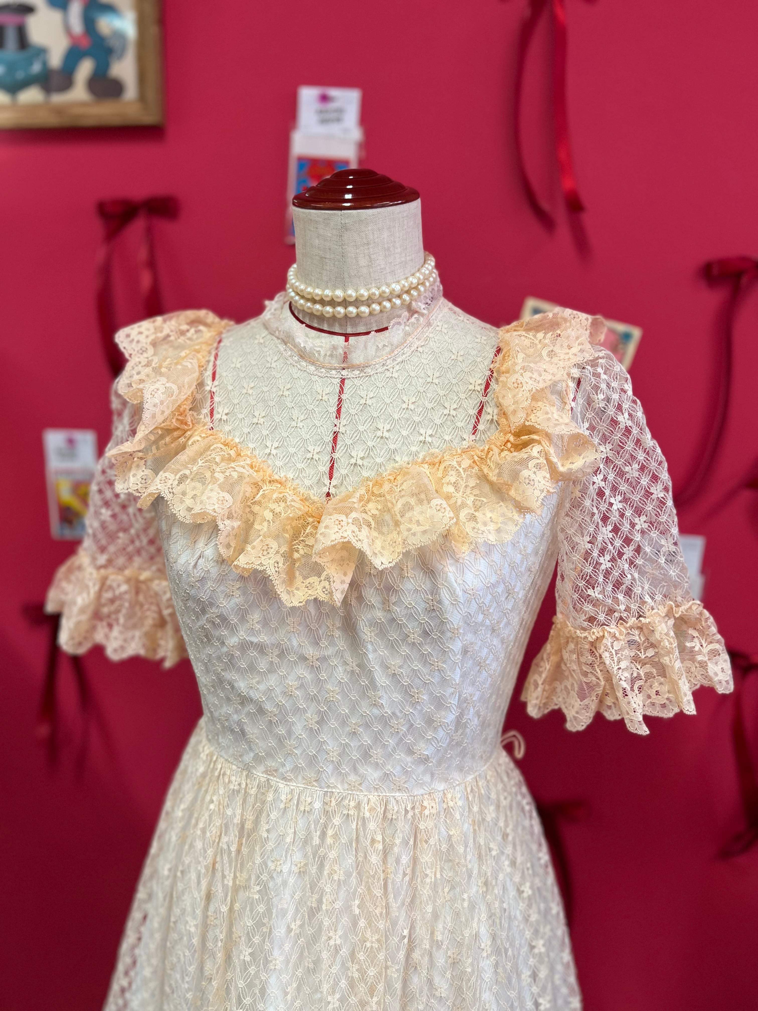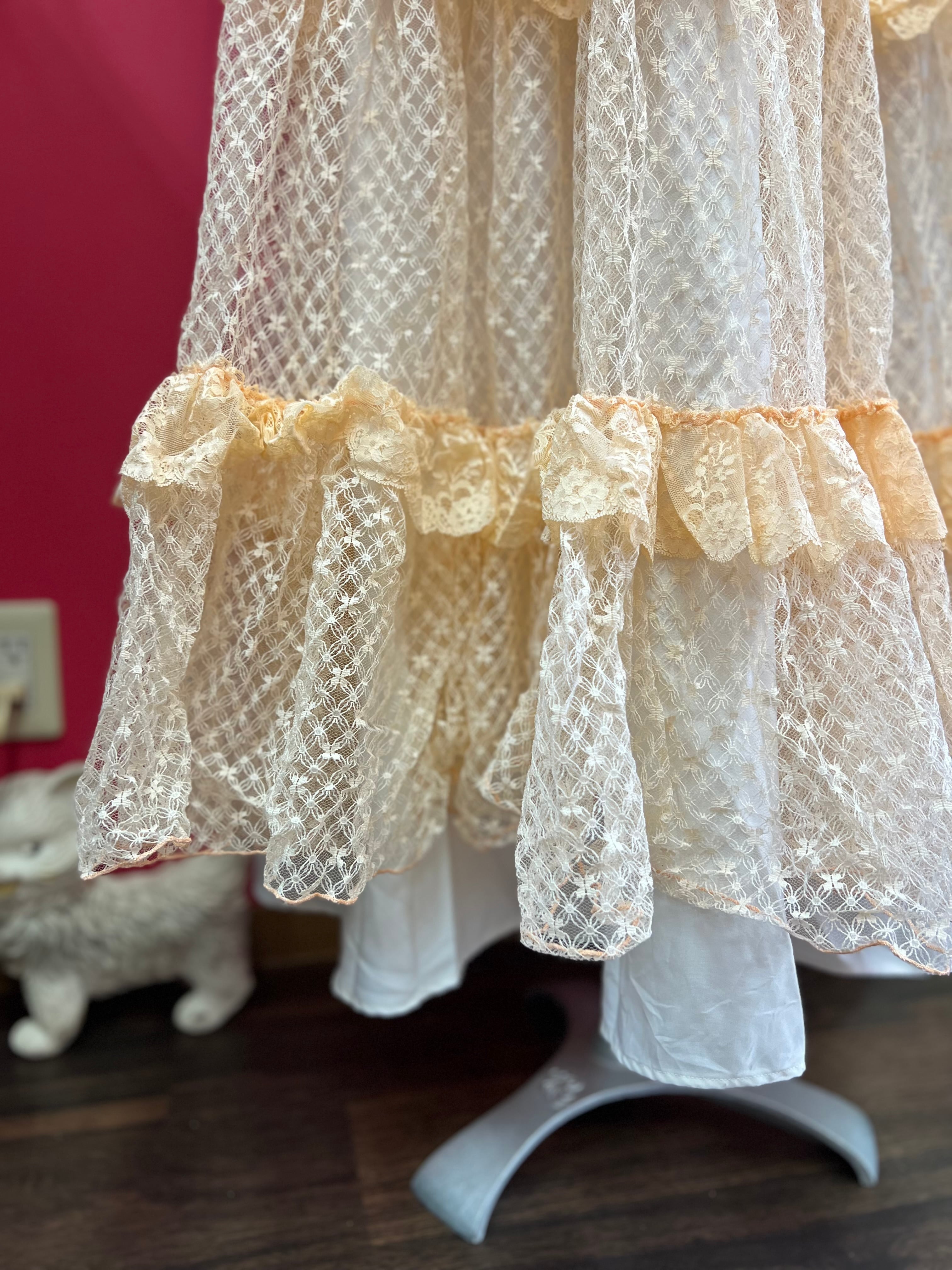 パーティーに出かけたくなるペールオレンジのヴィンテージレースドレス