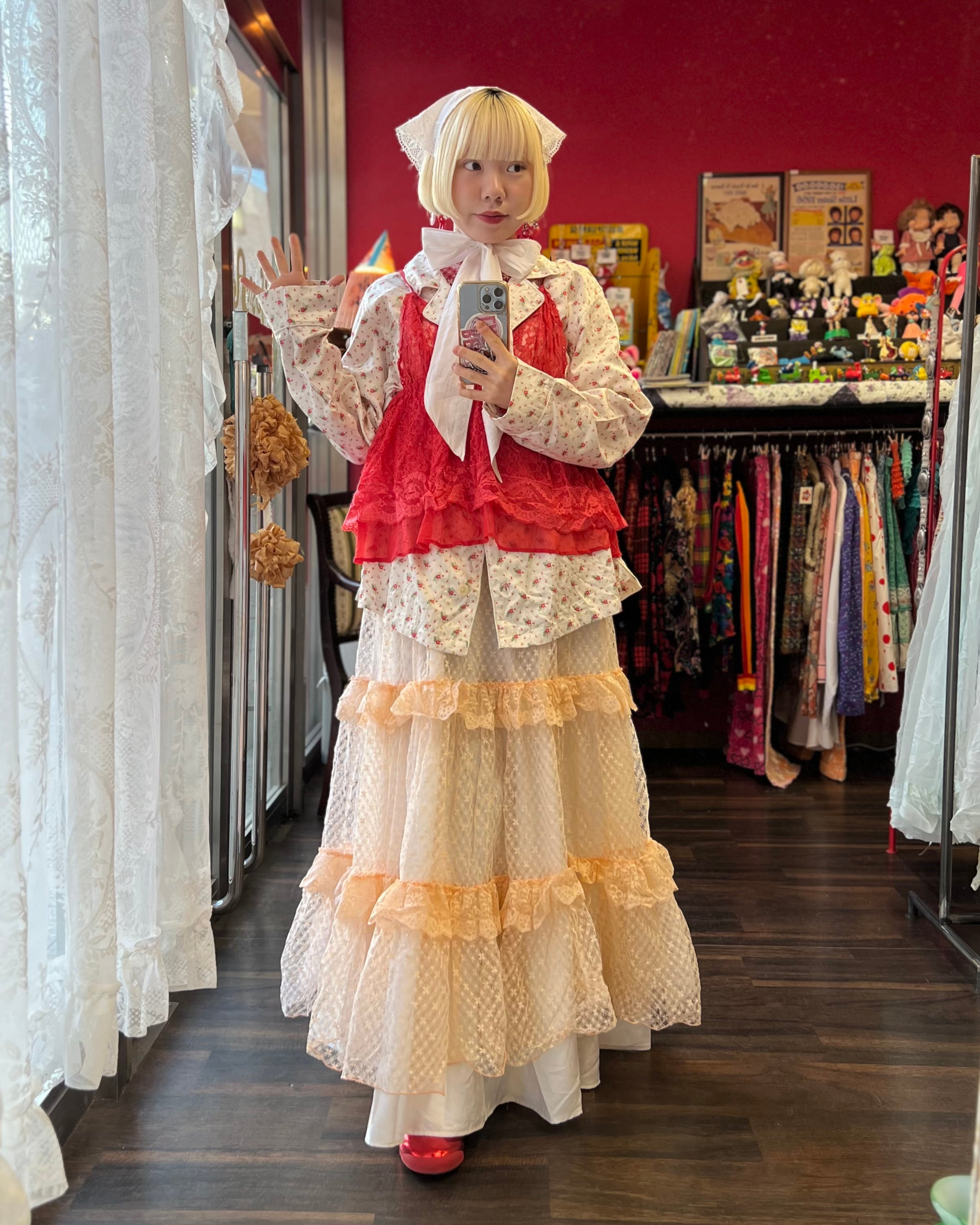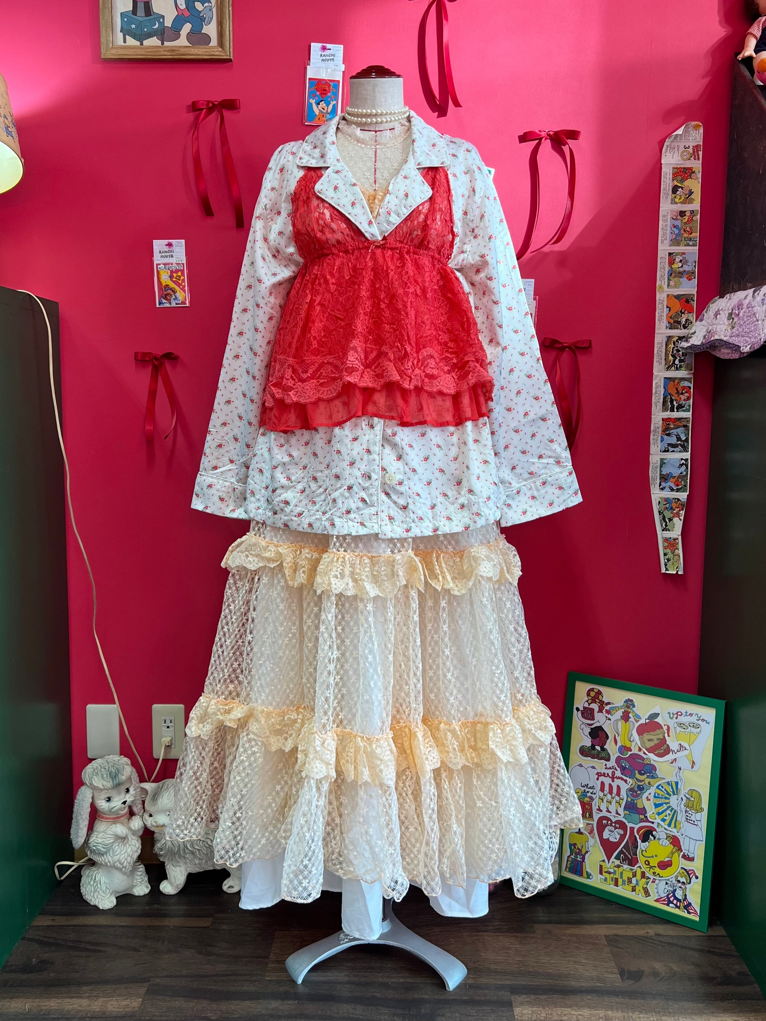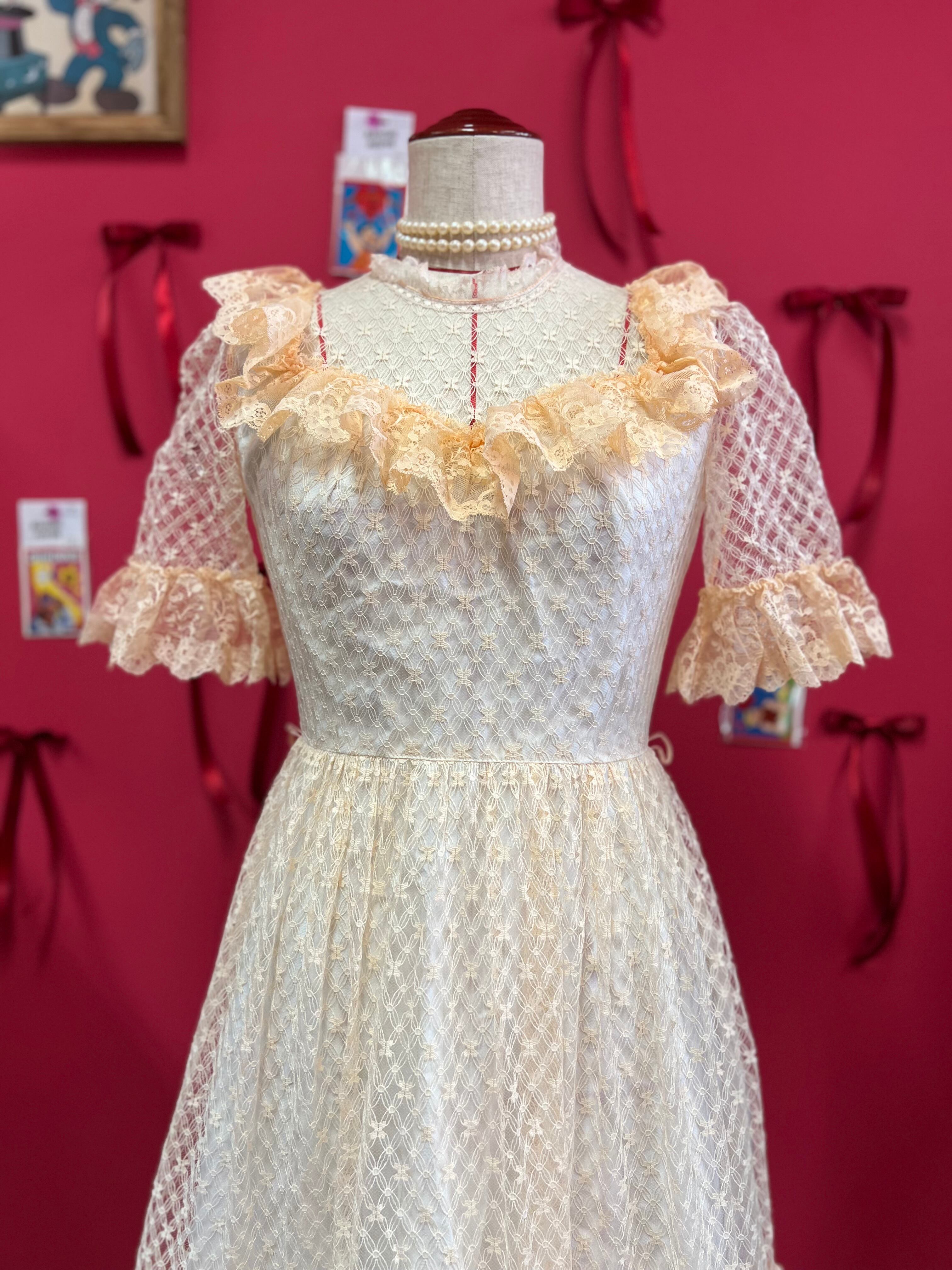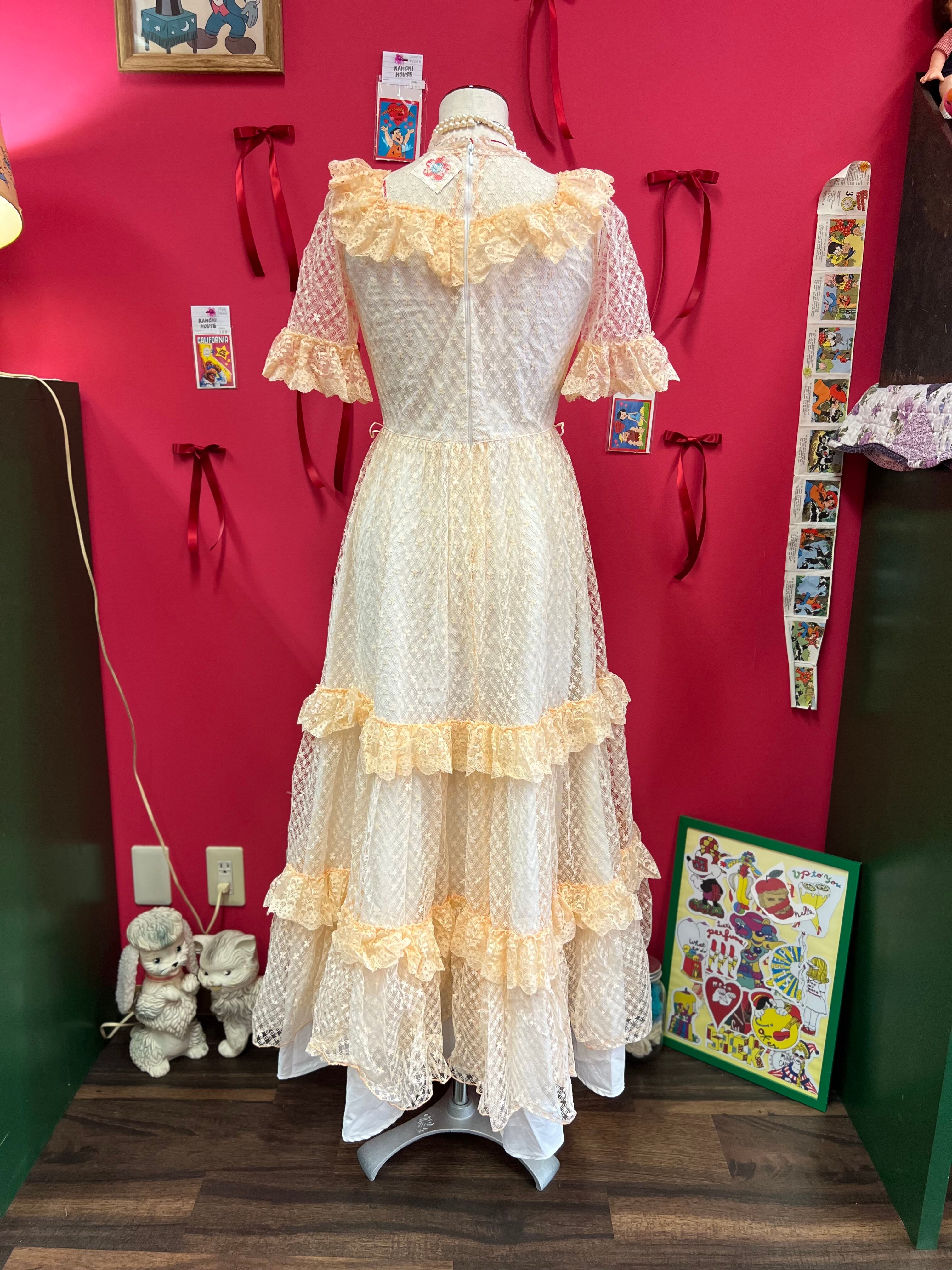 パーティーに出かけたくなるペールオレンジのヴィンテージレースドレス