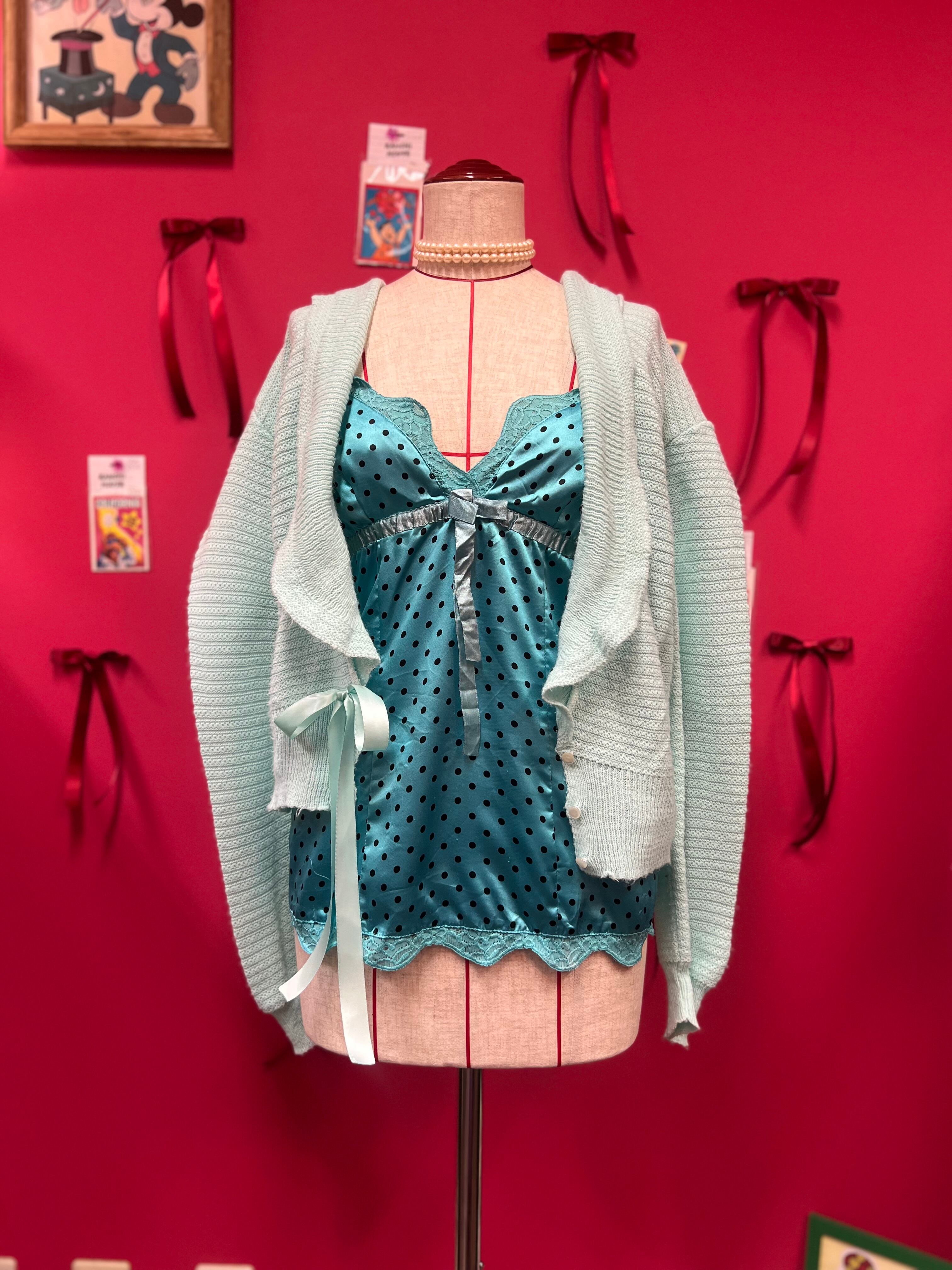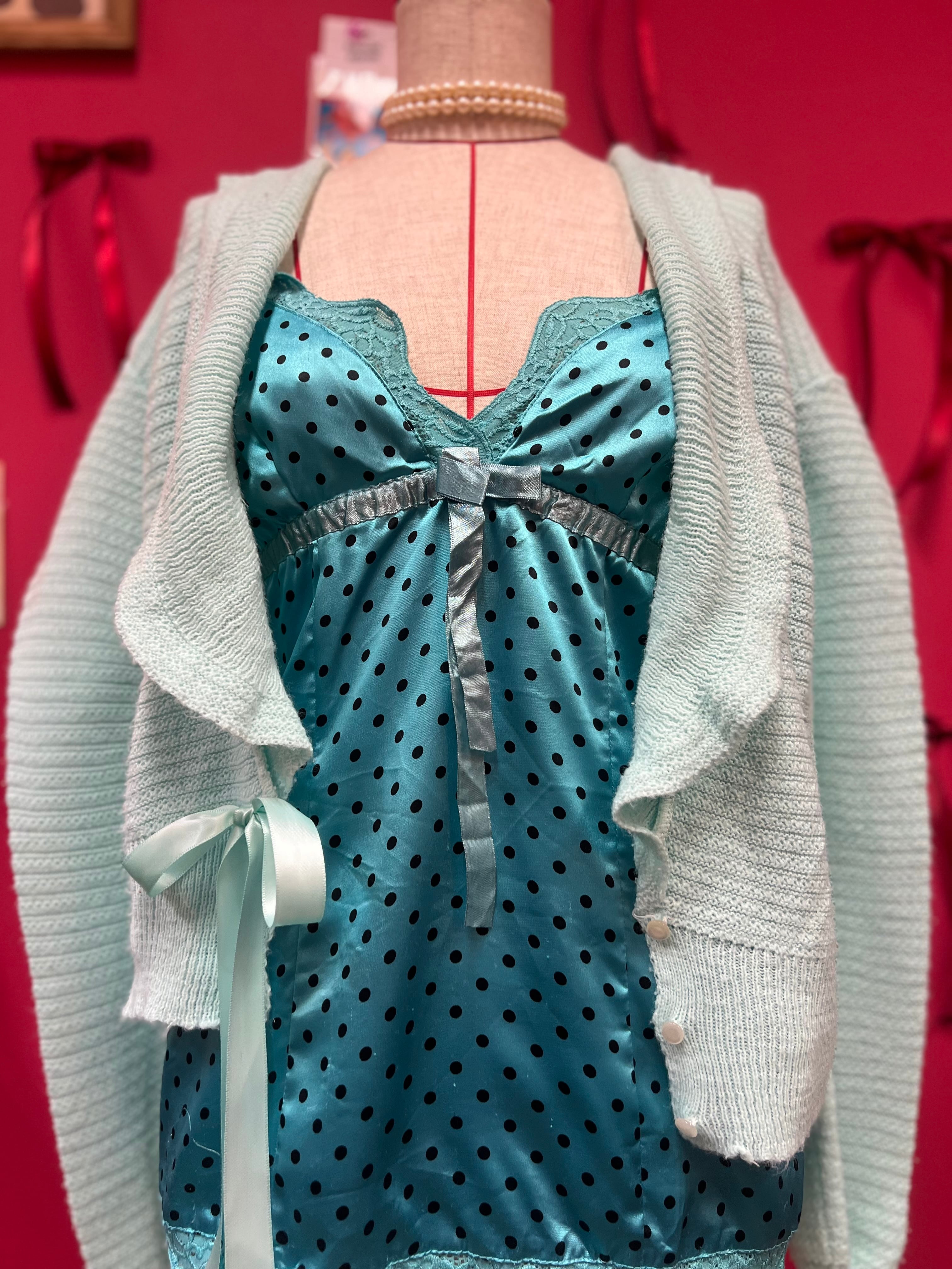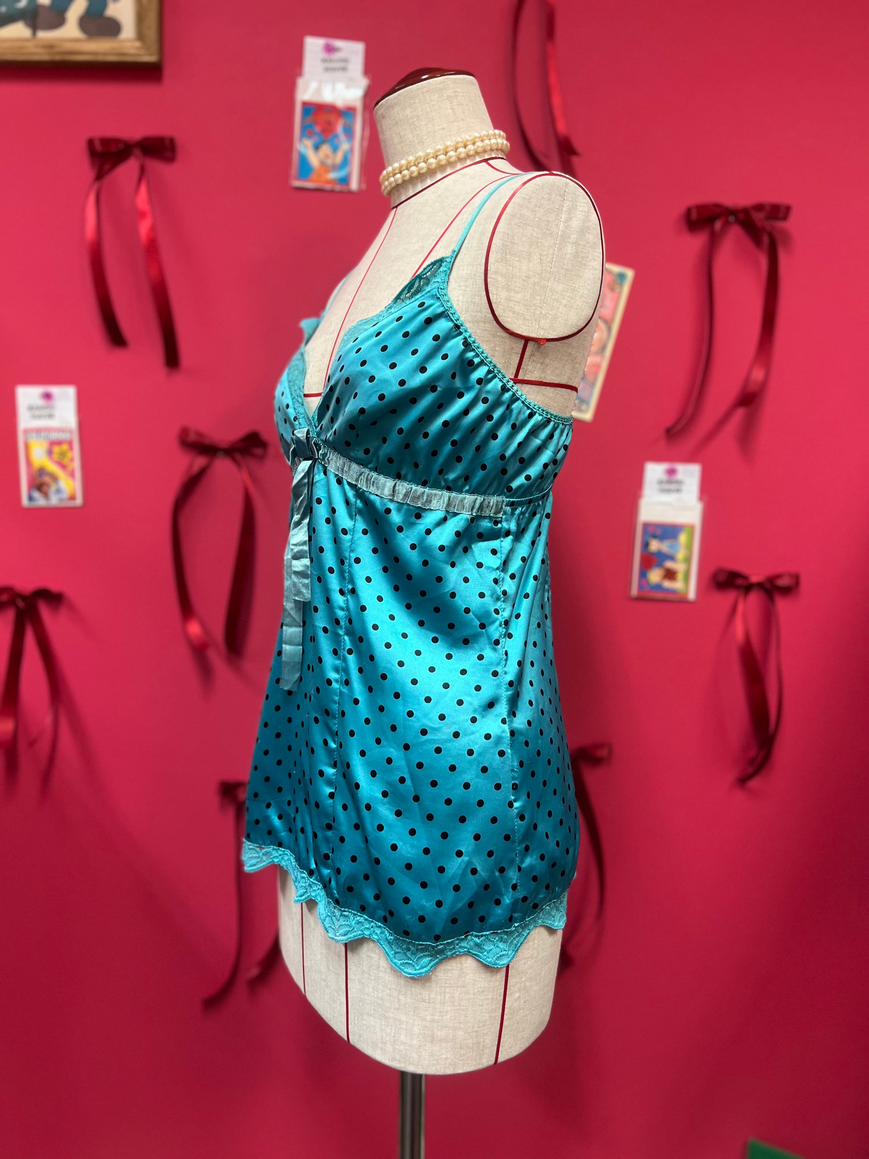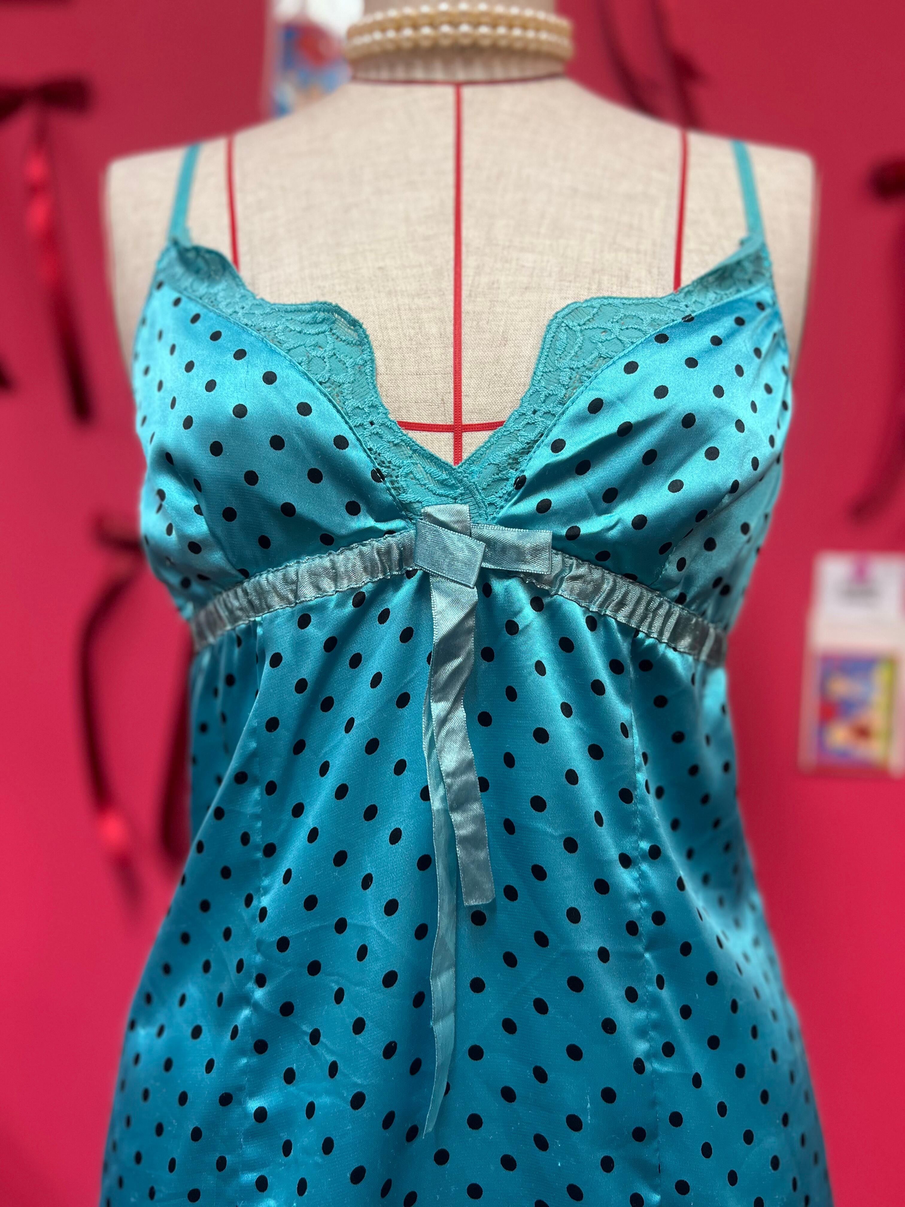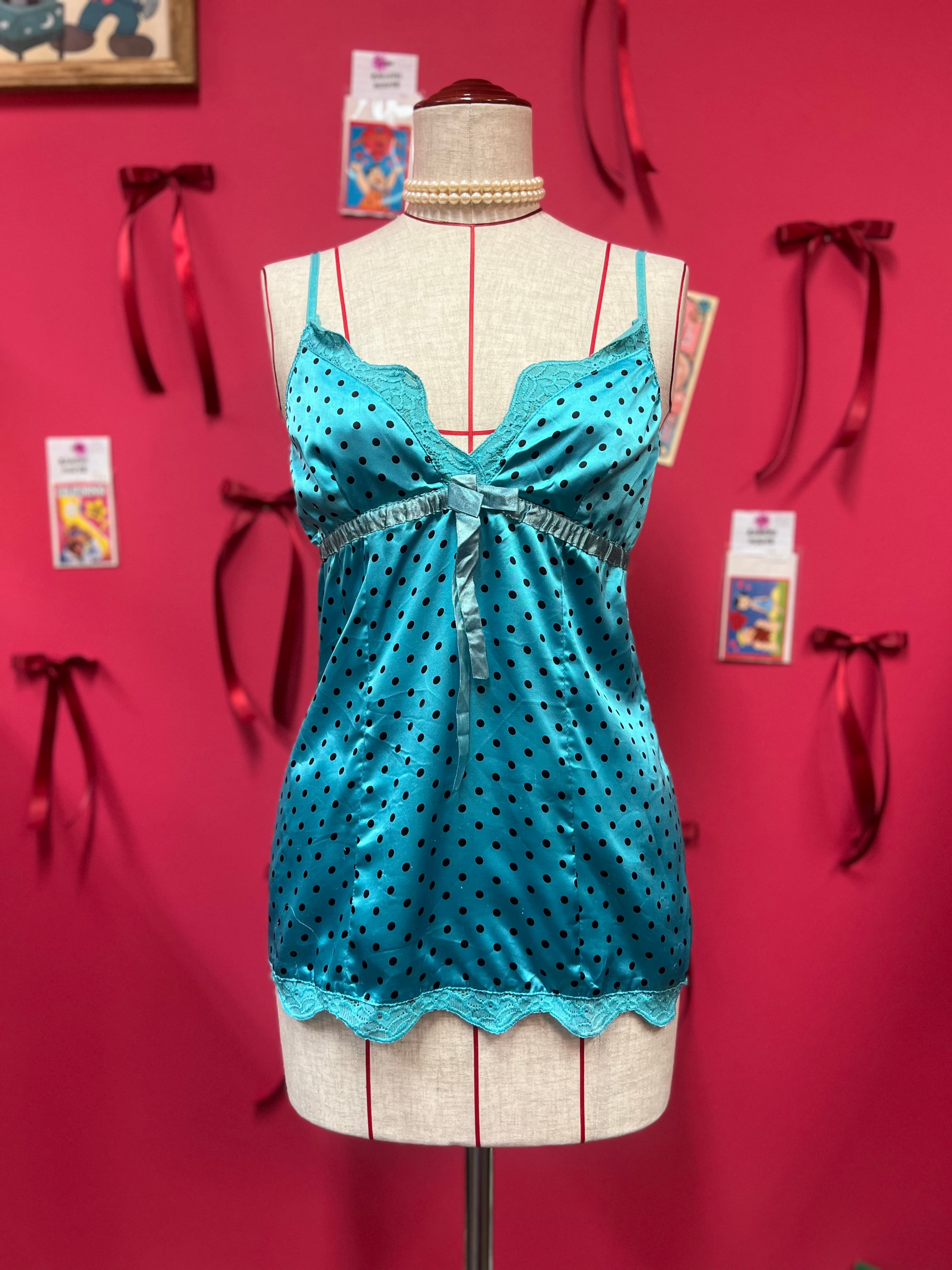 つやつやブルードットのキャミソール