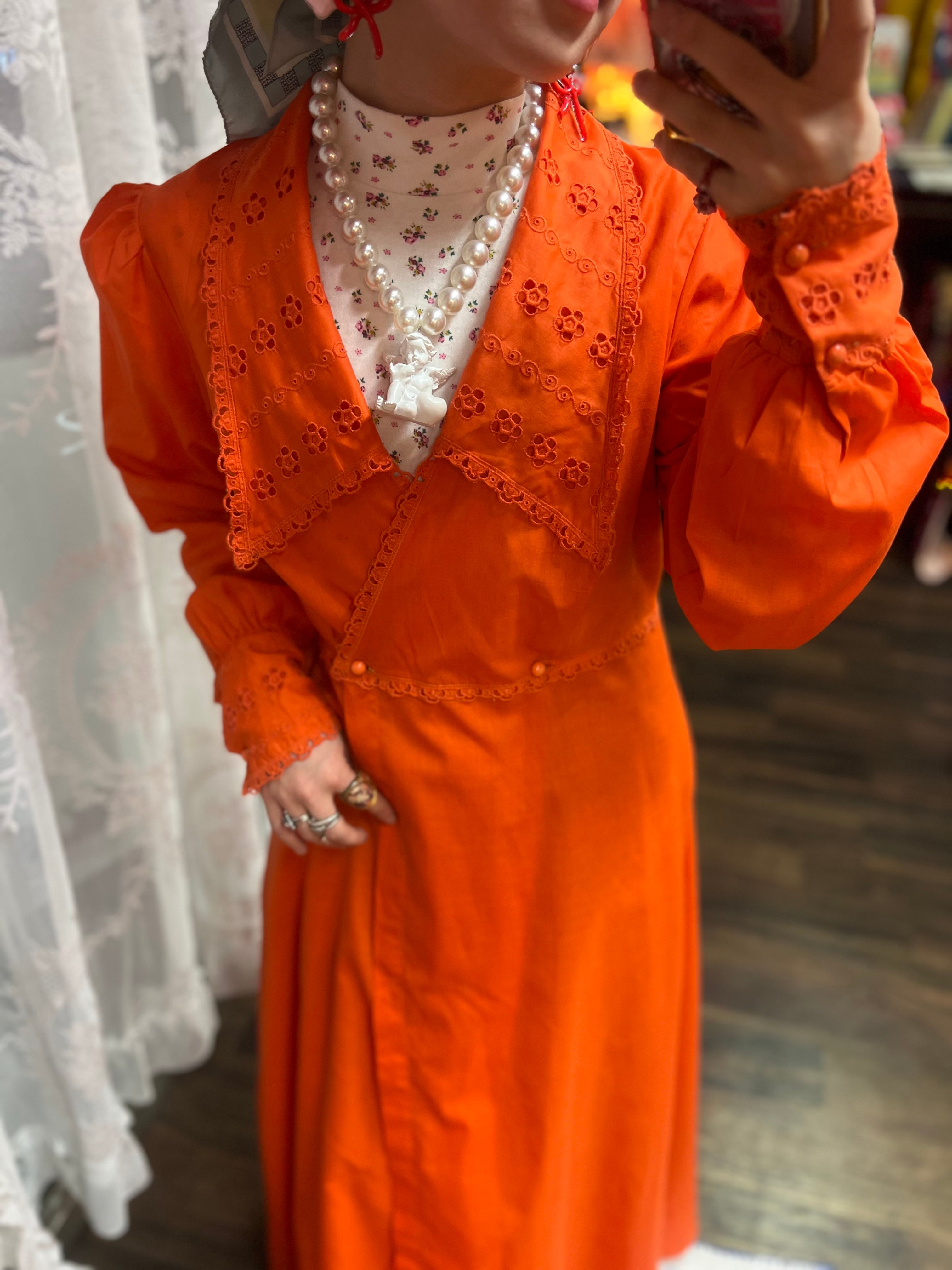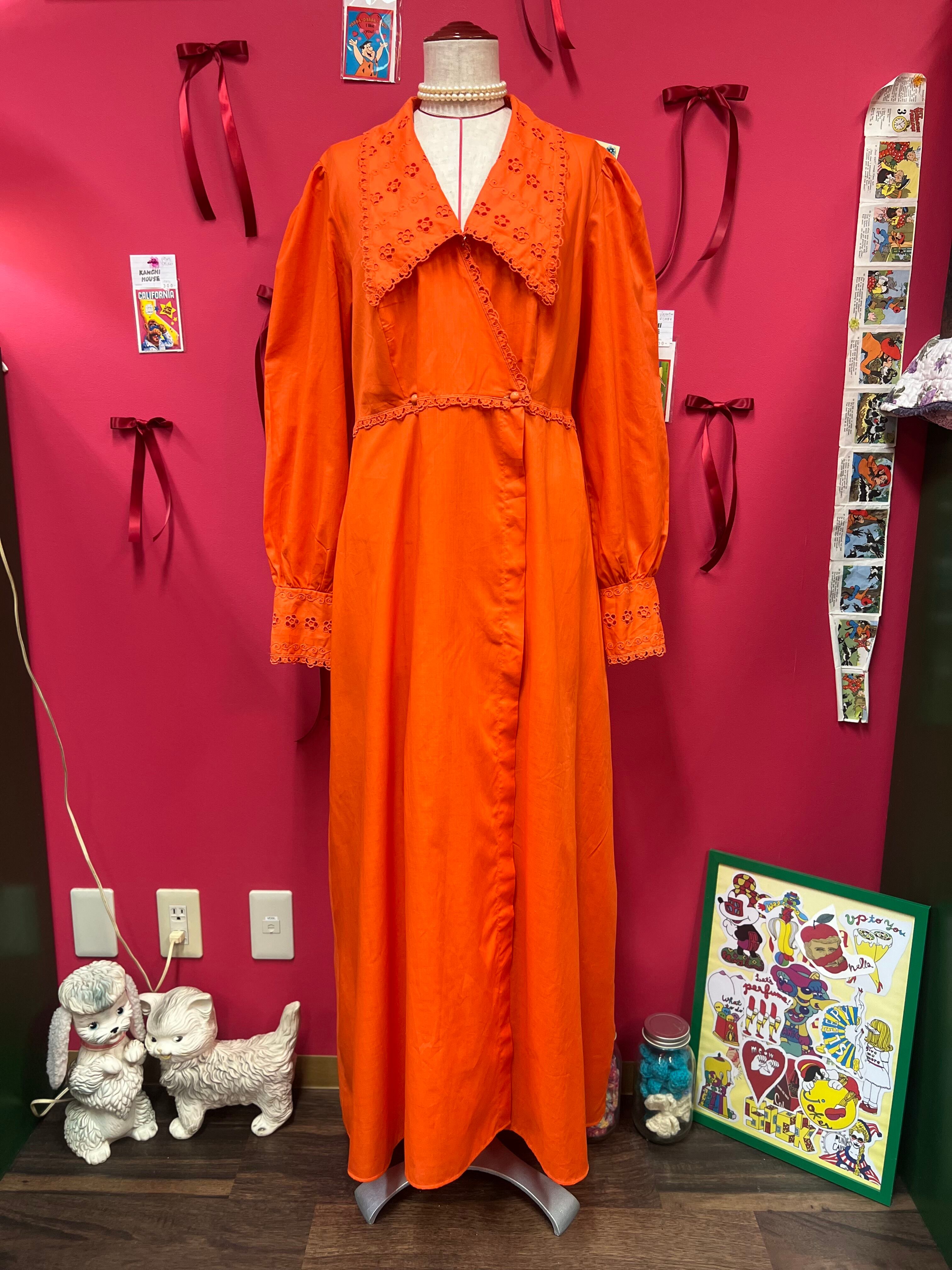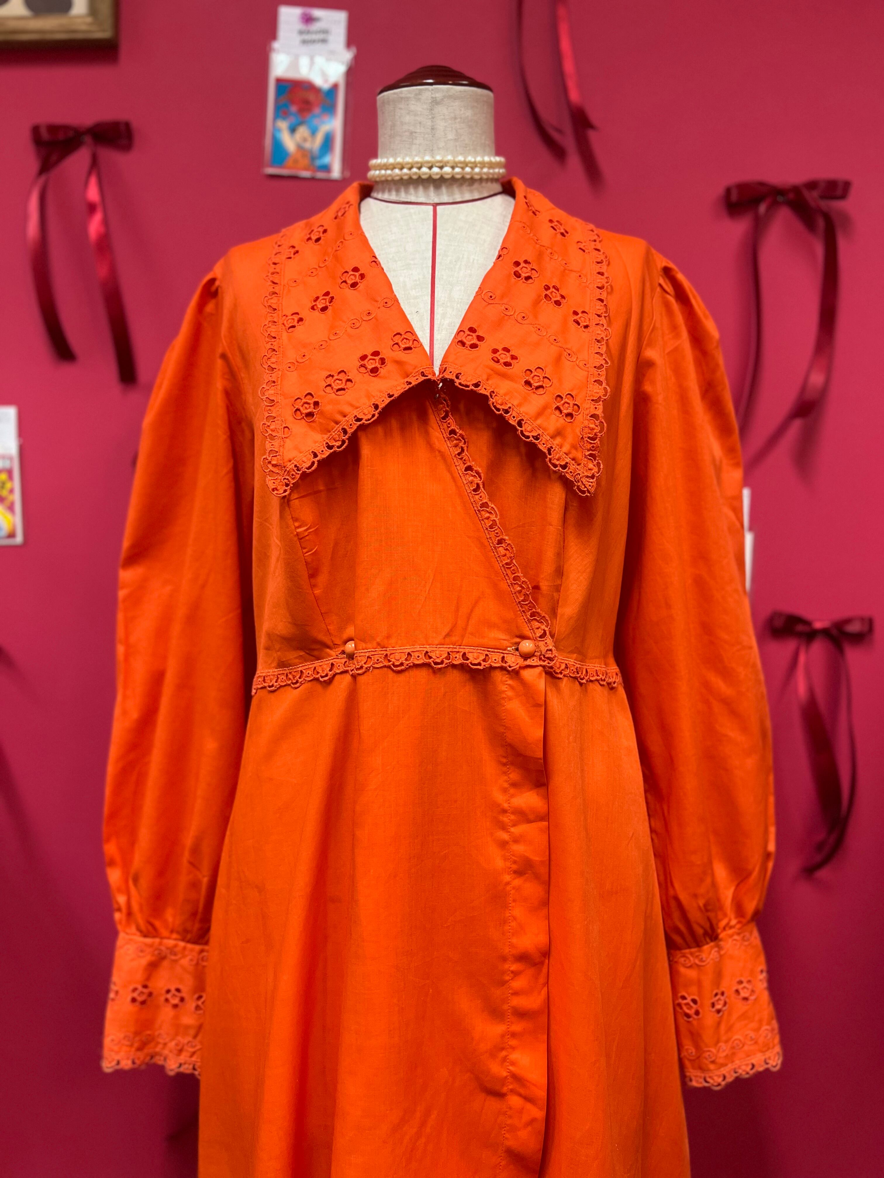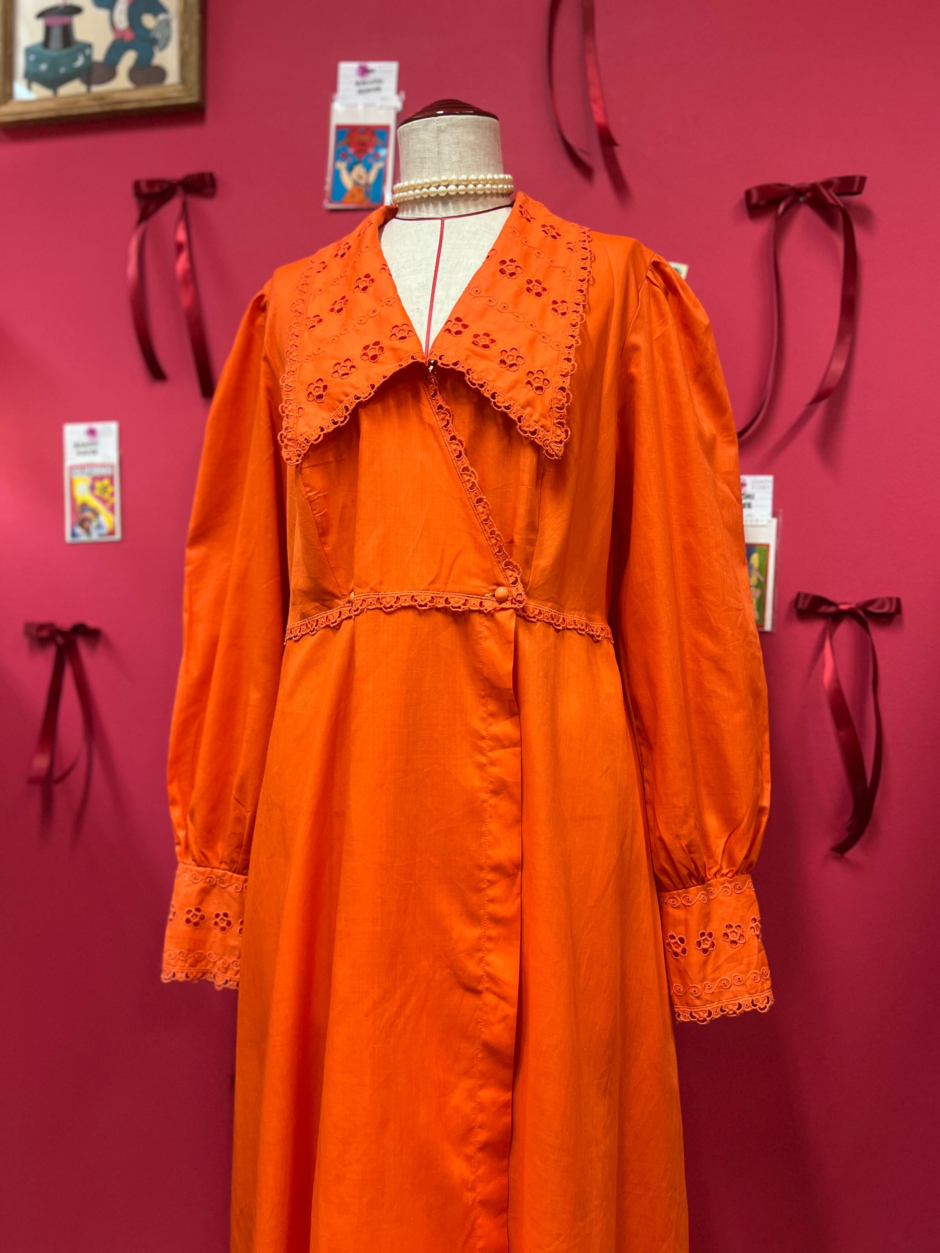 大きな襟が可愛いオレンジレトロドレス