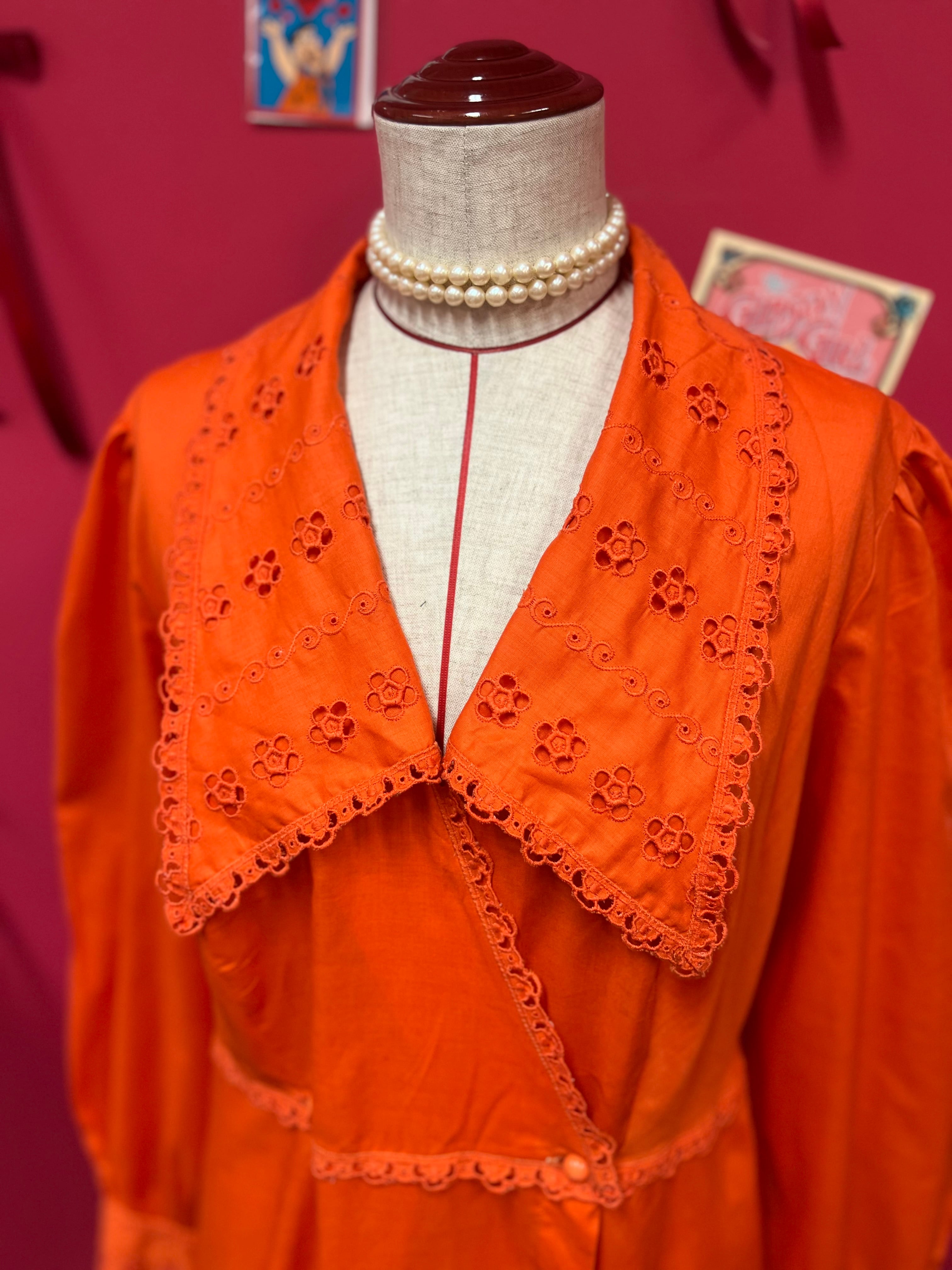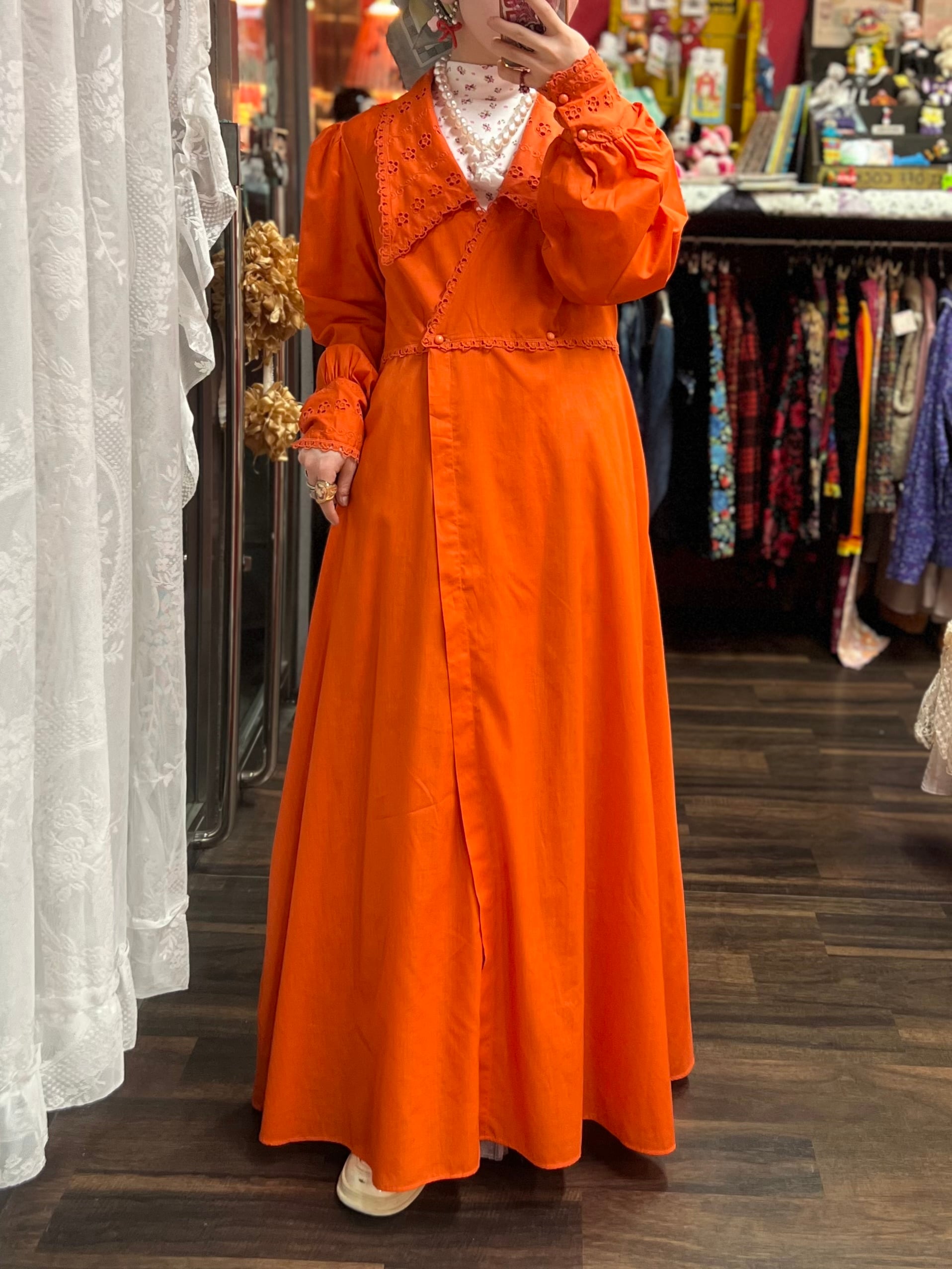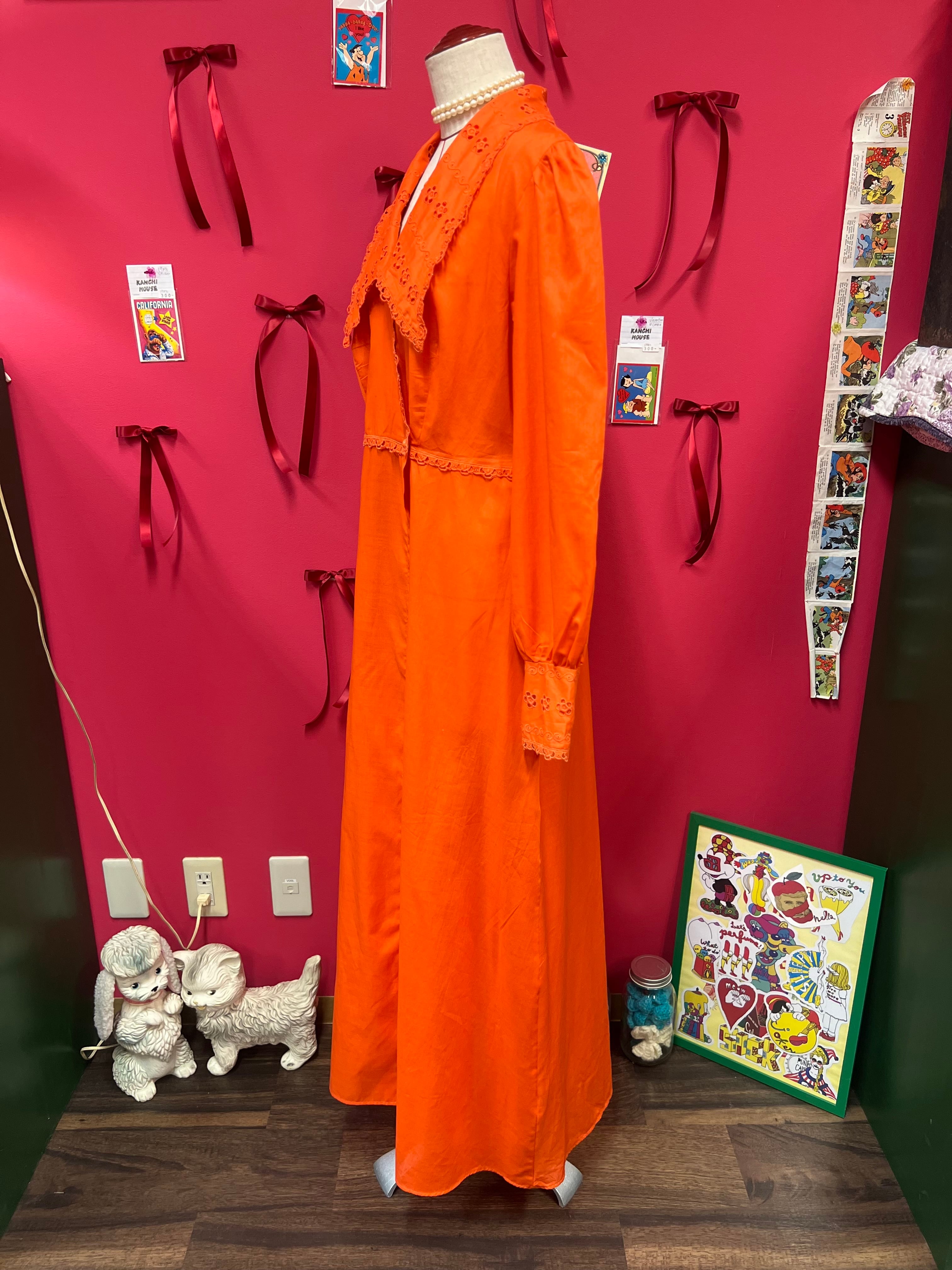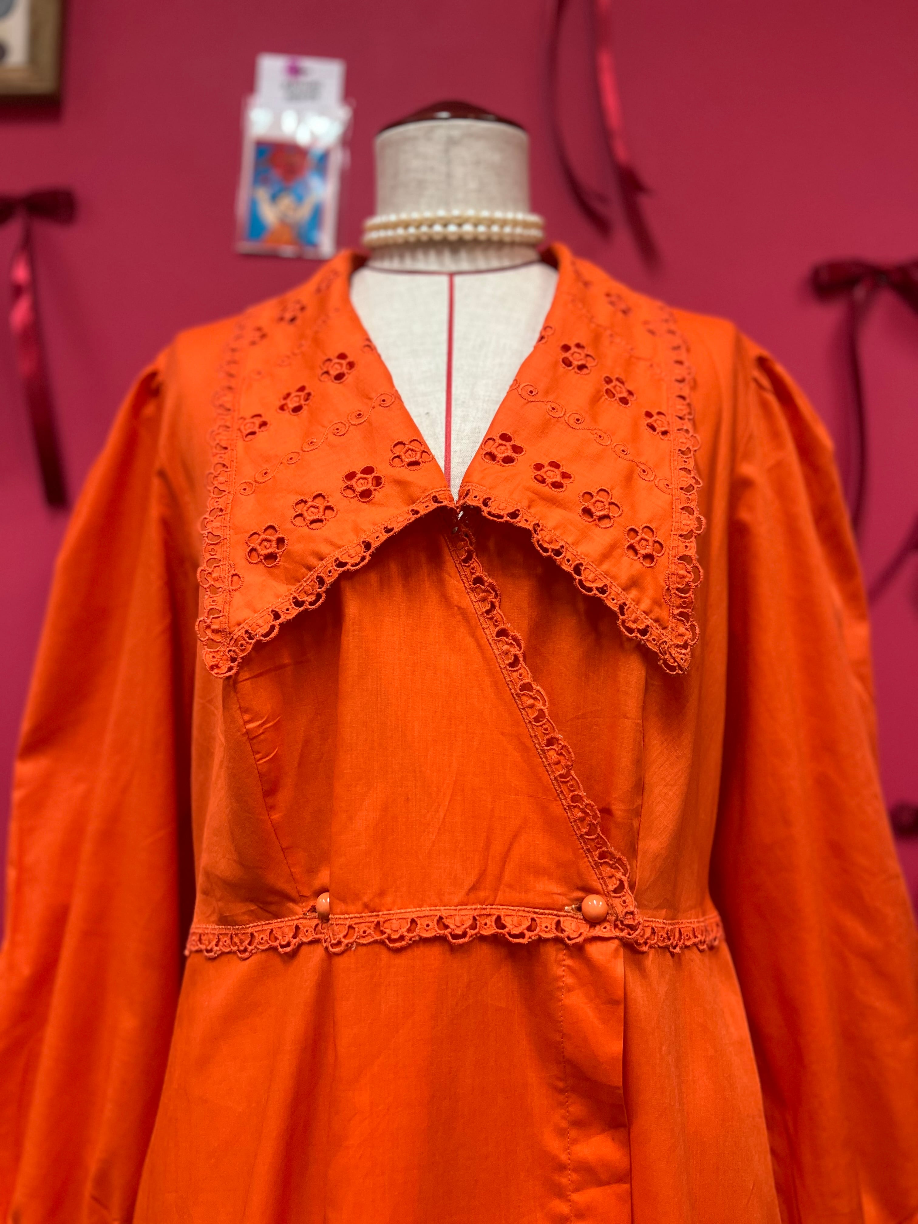 大きな襟が可愛いオレンジレトロドレス