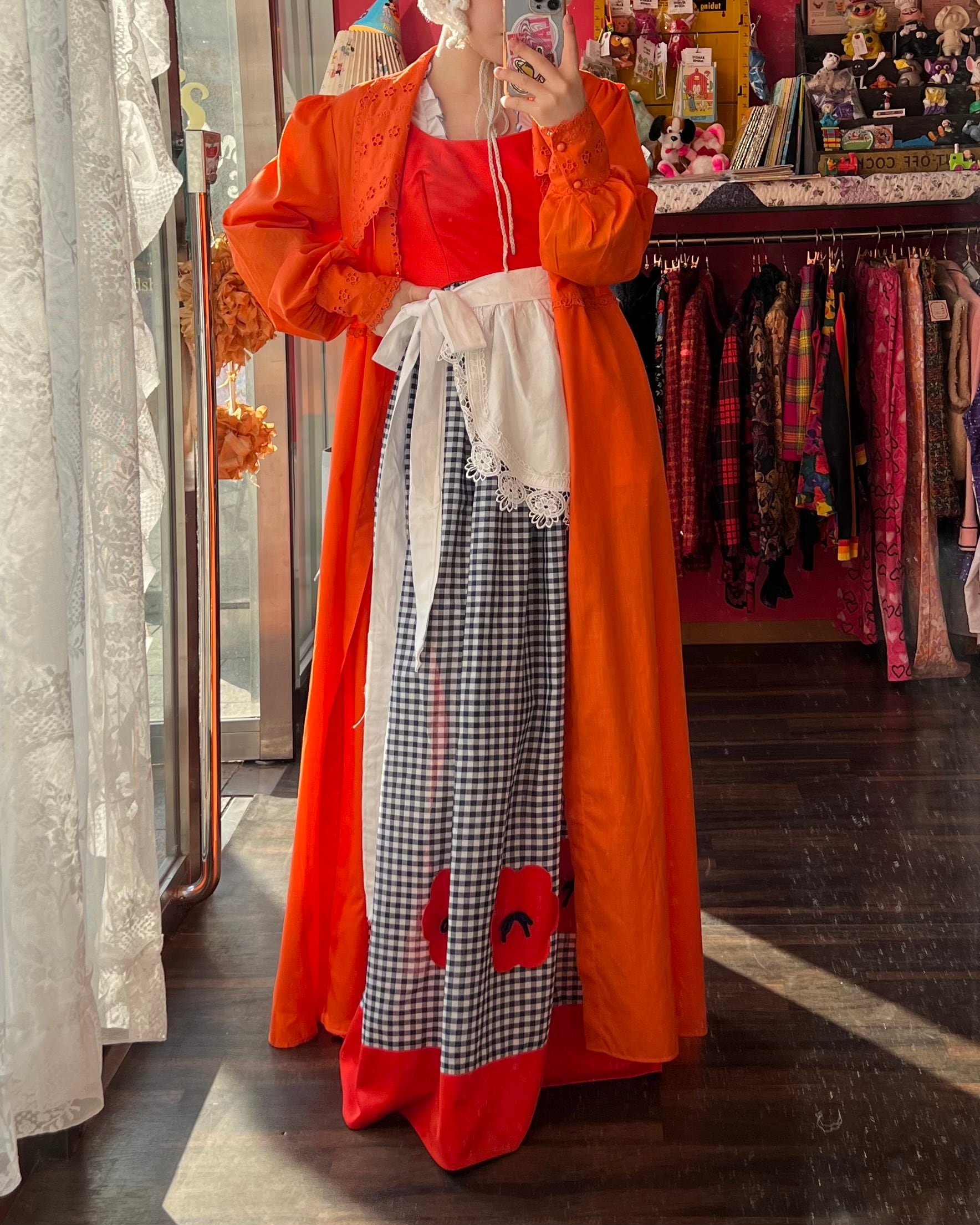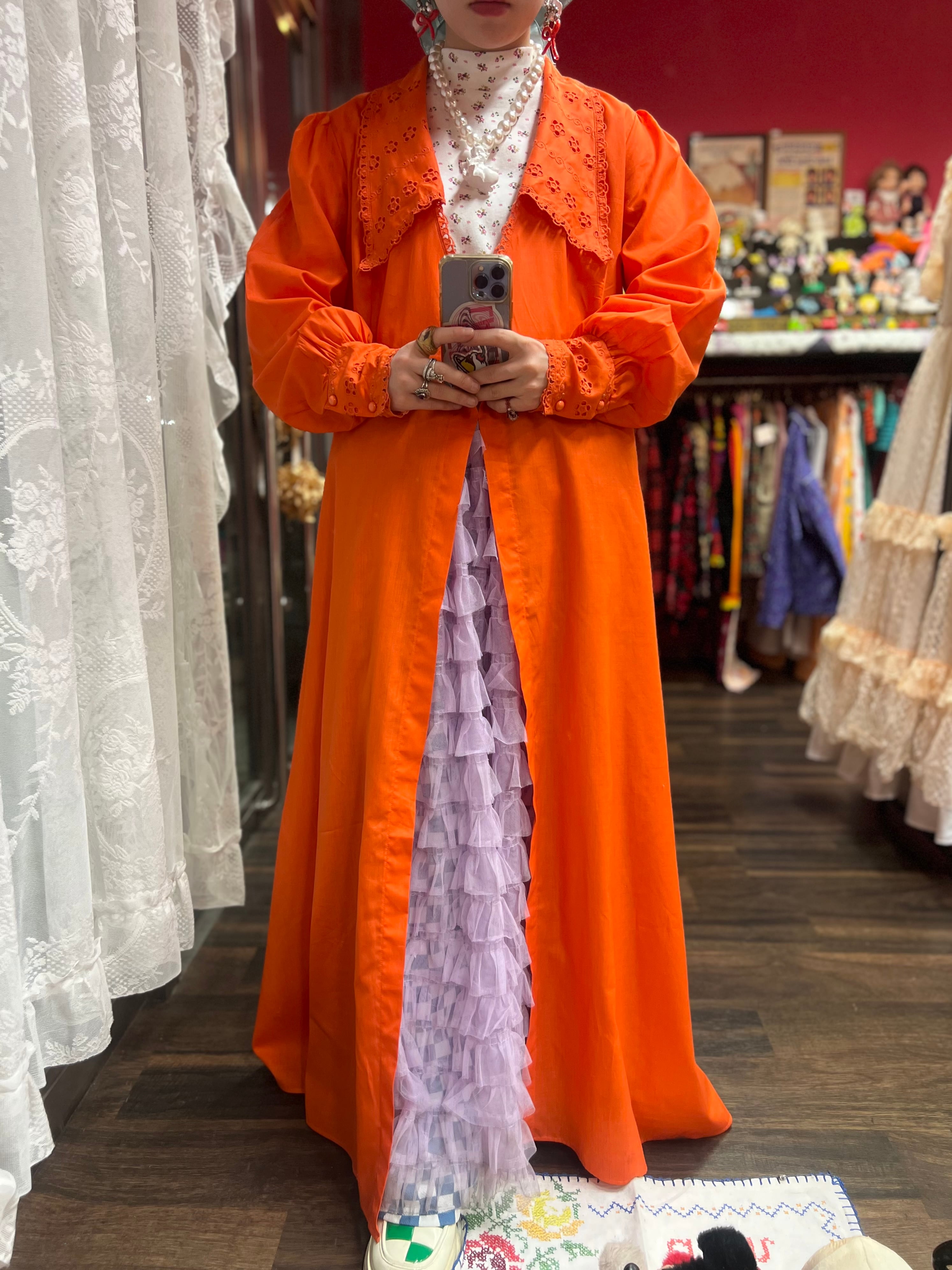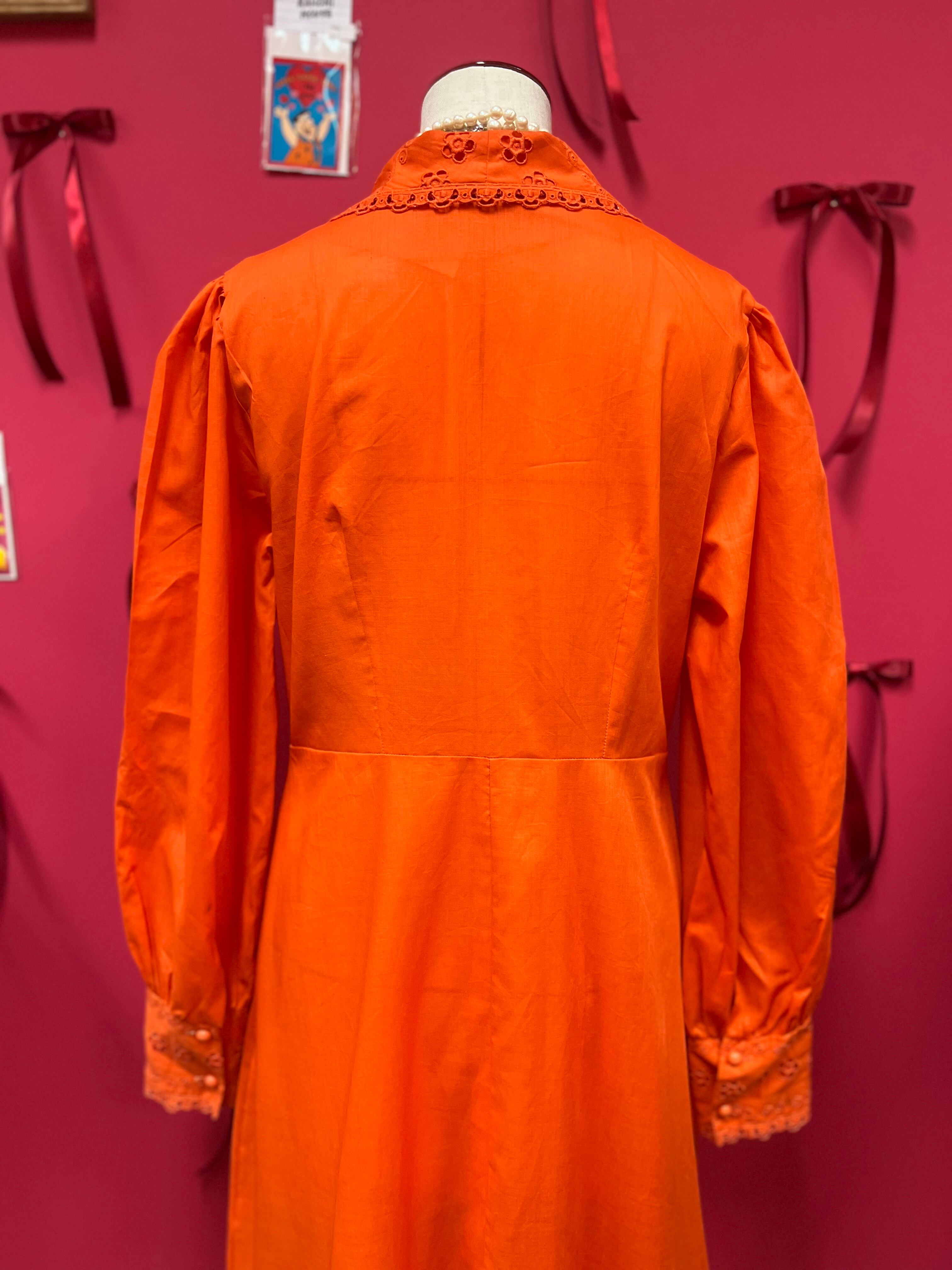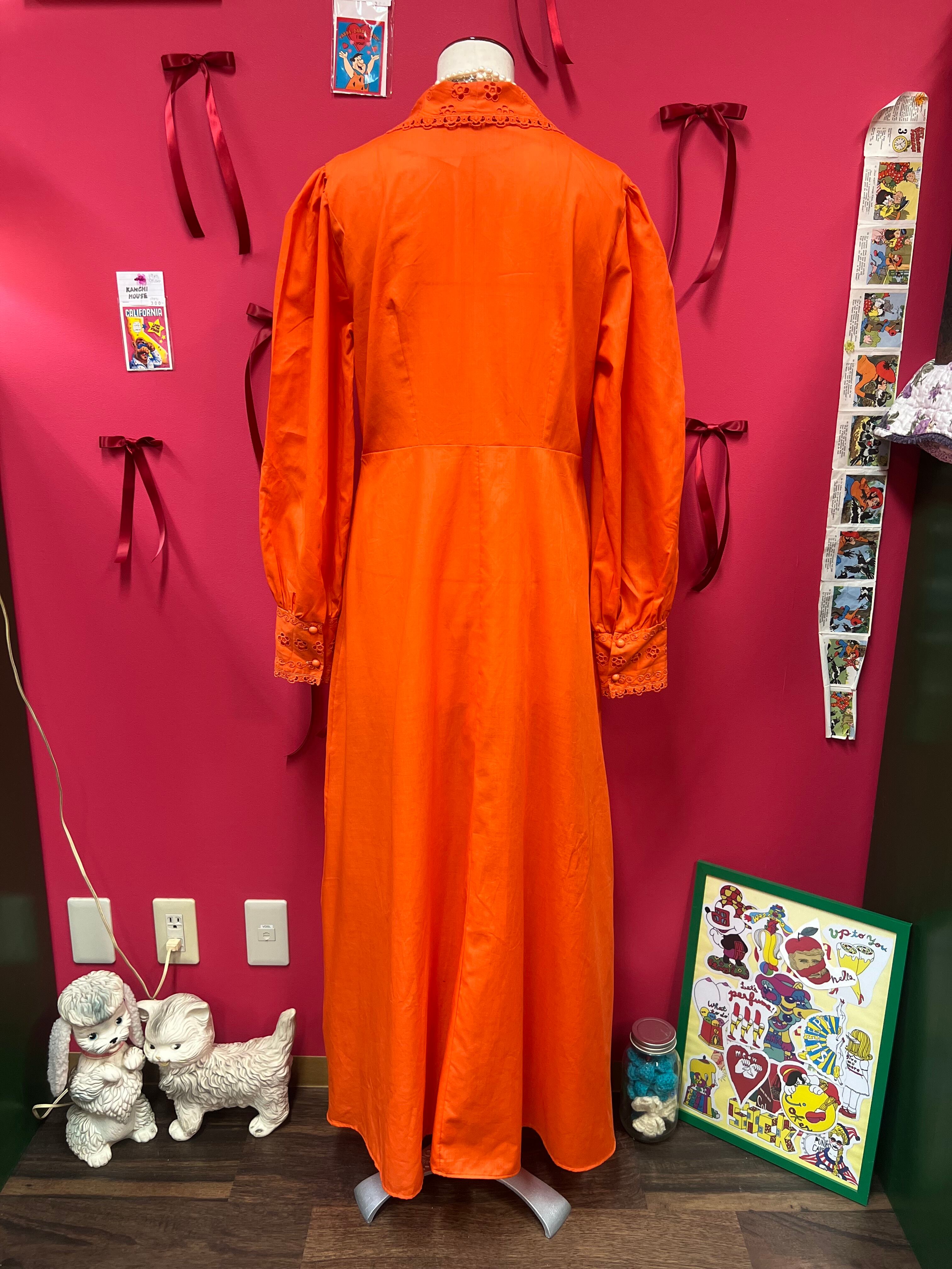 大きな襟が可愛いオレンジレトロドレス