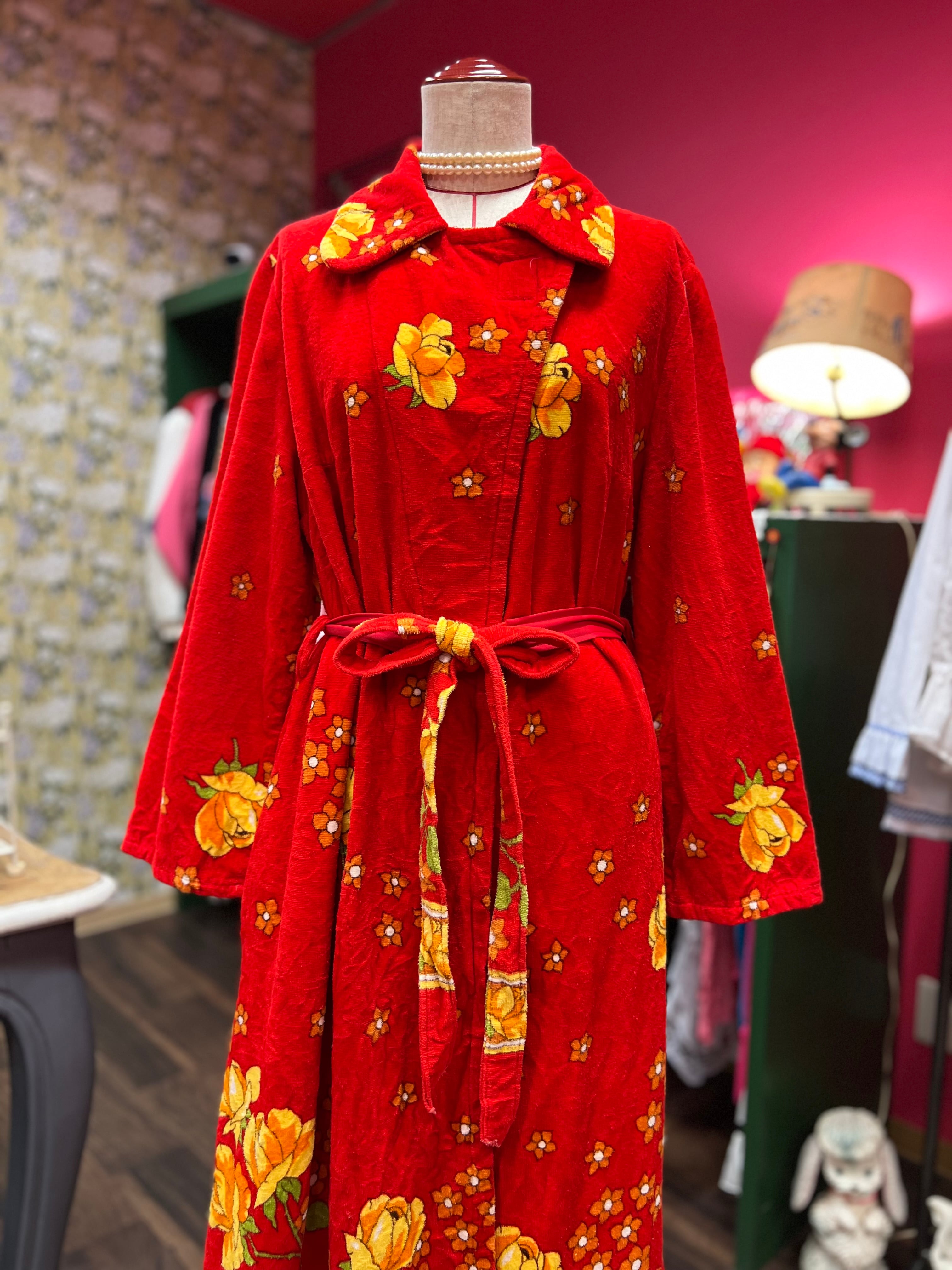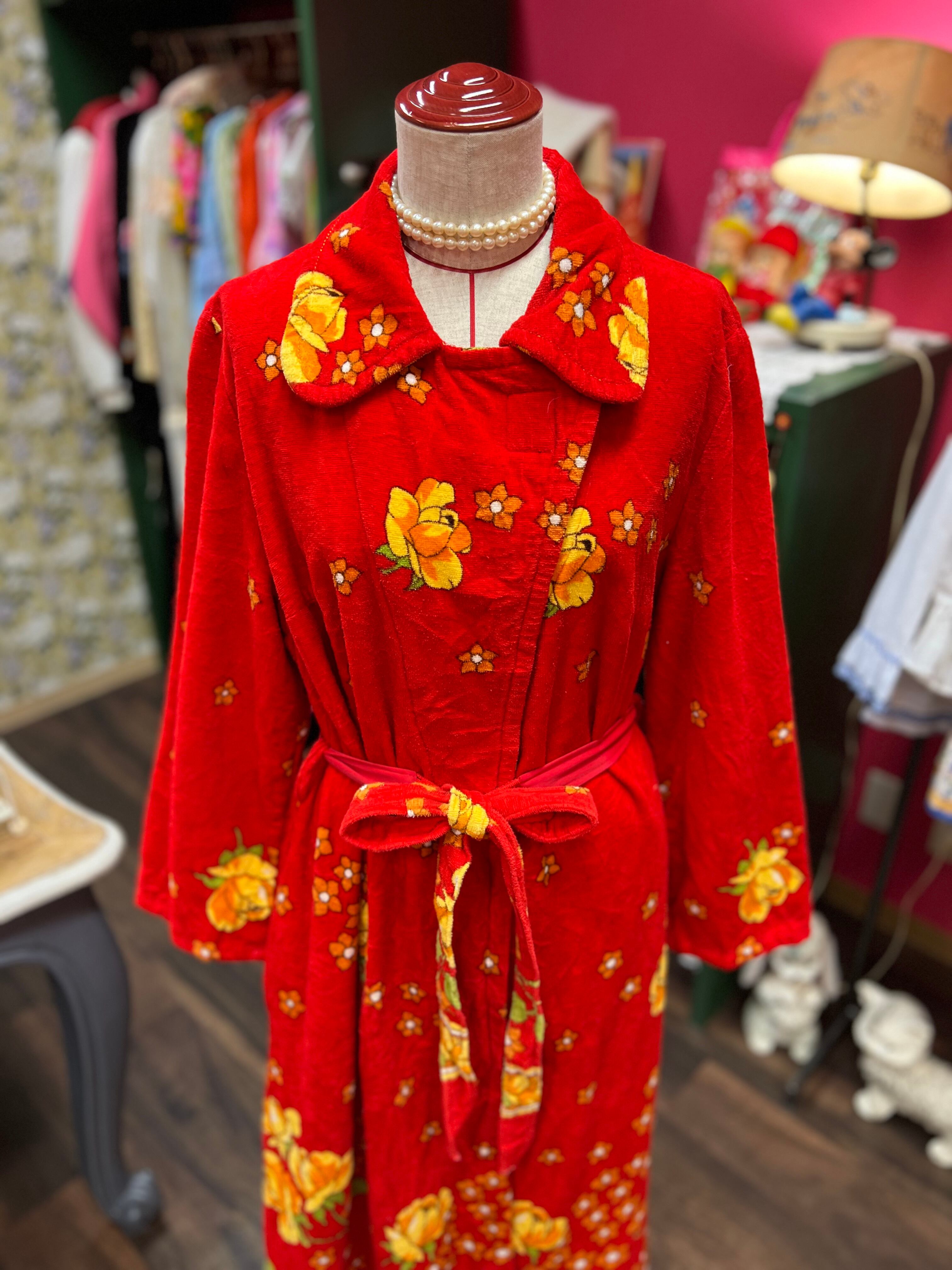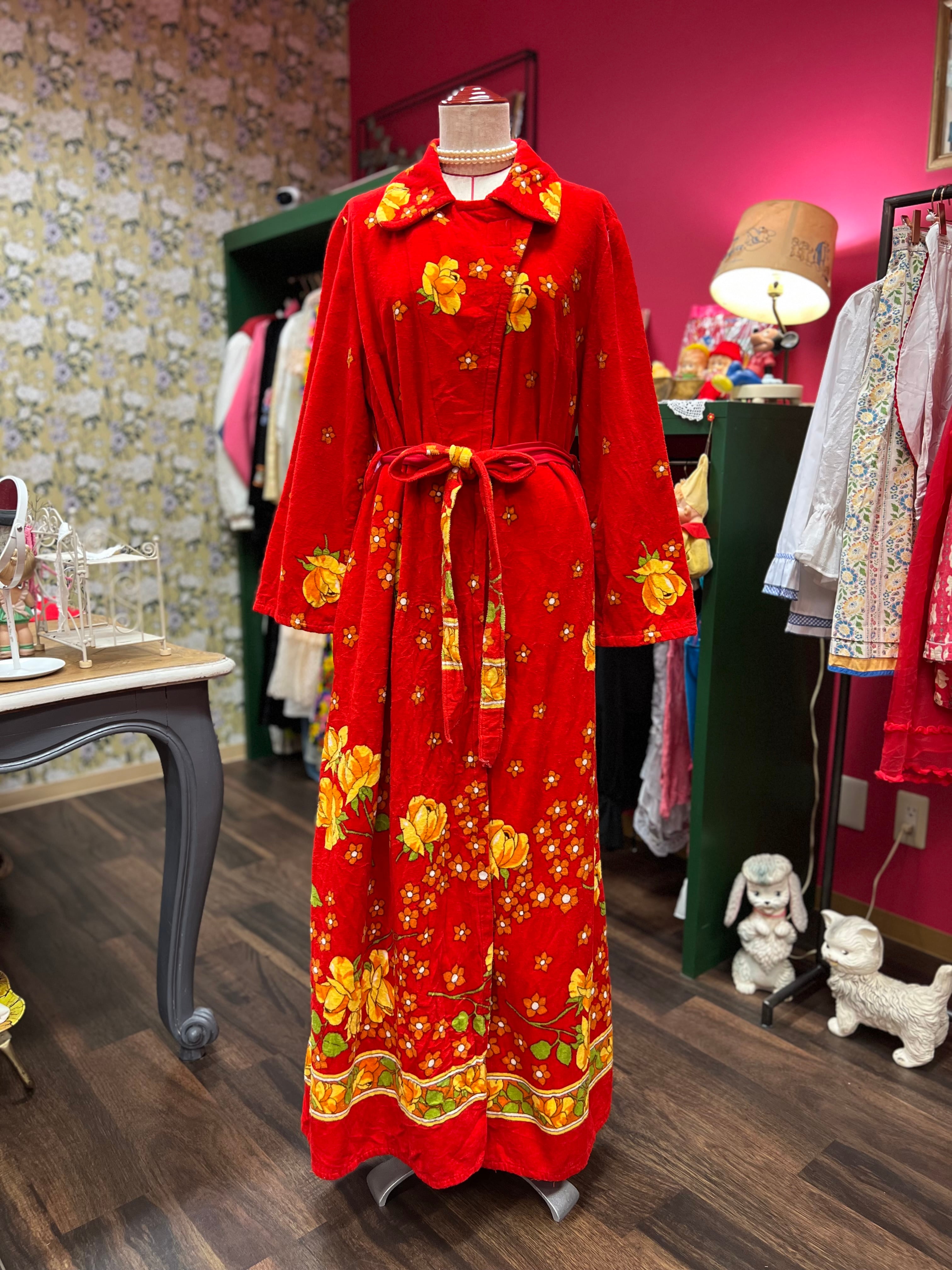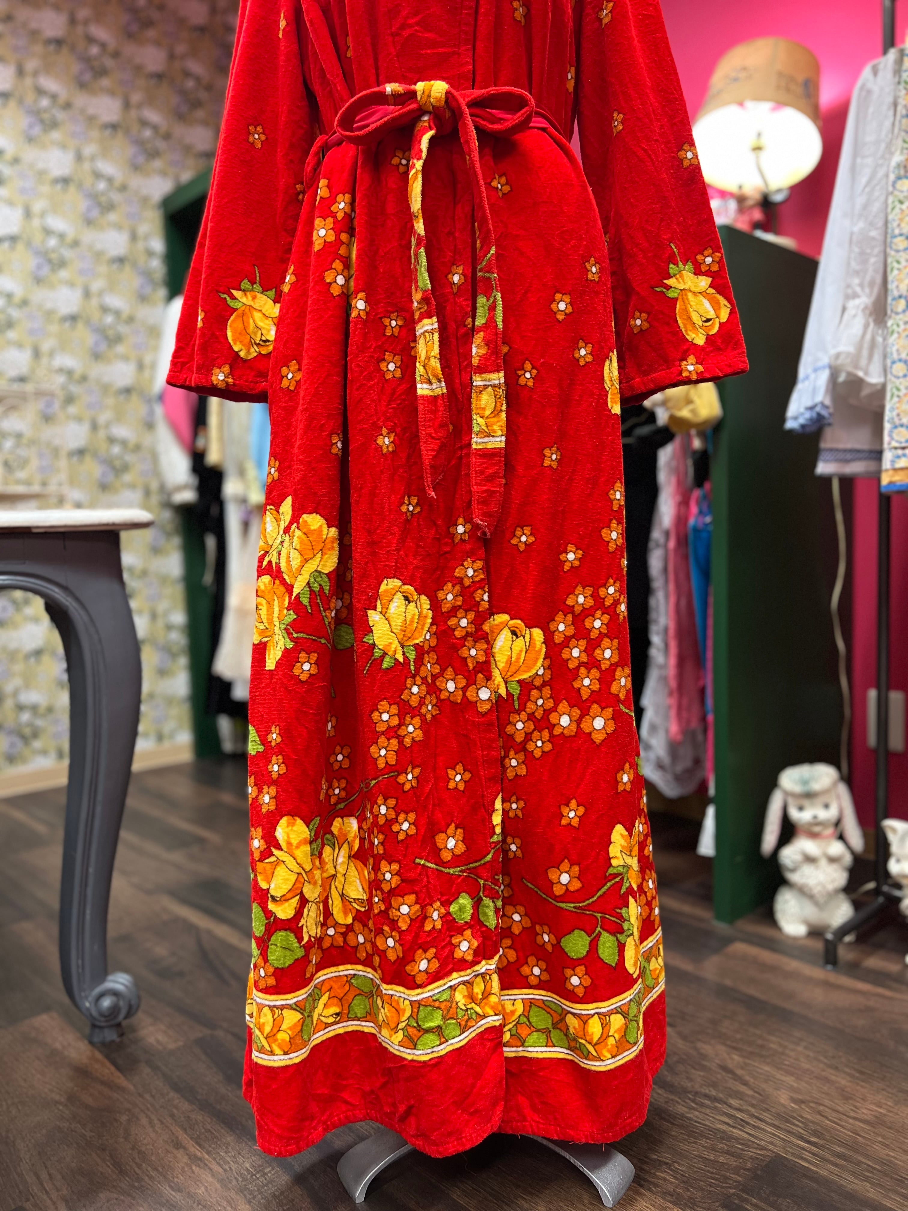 レトロなお花のパイルガウンドレス