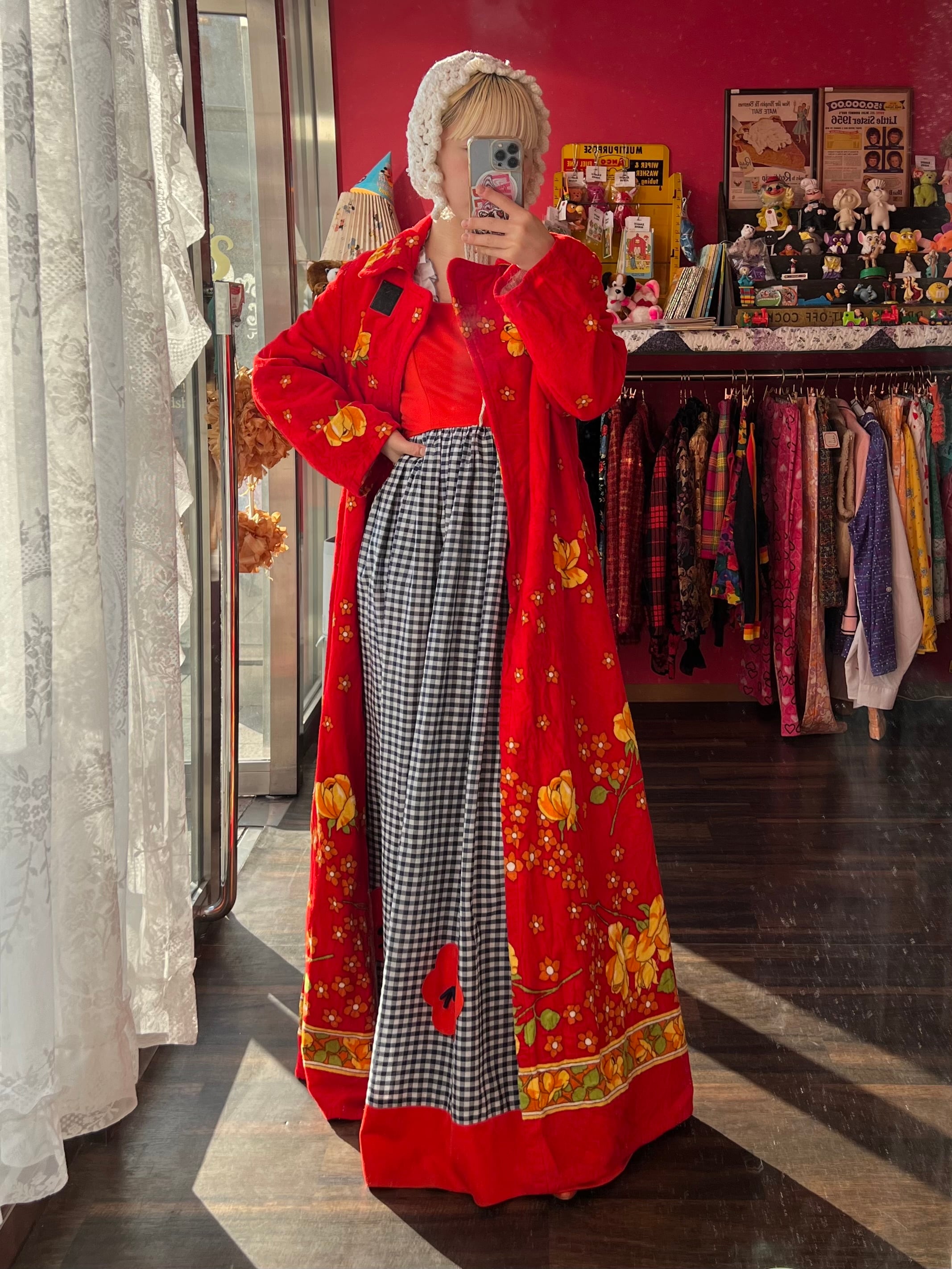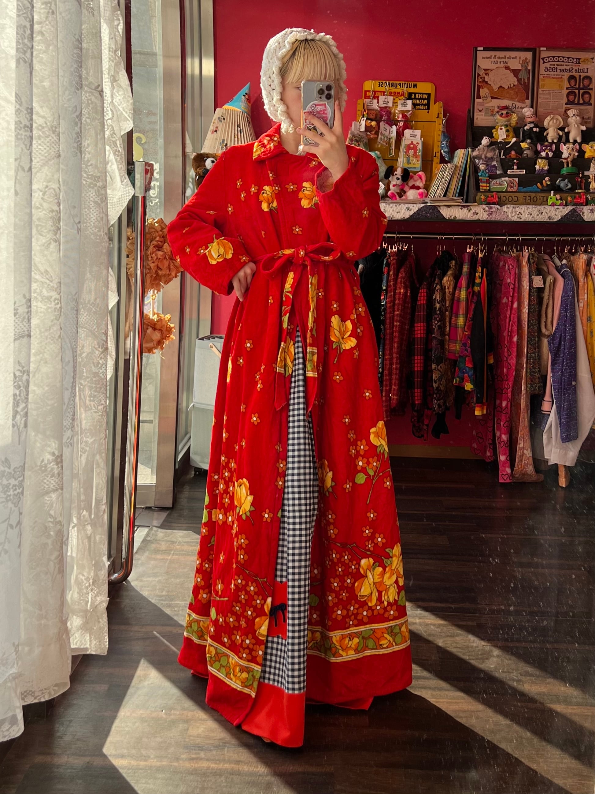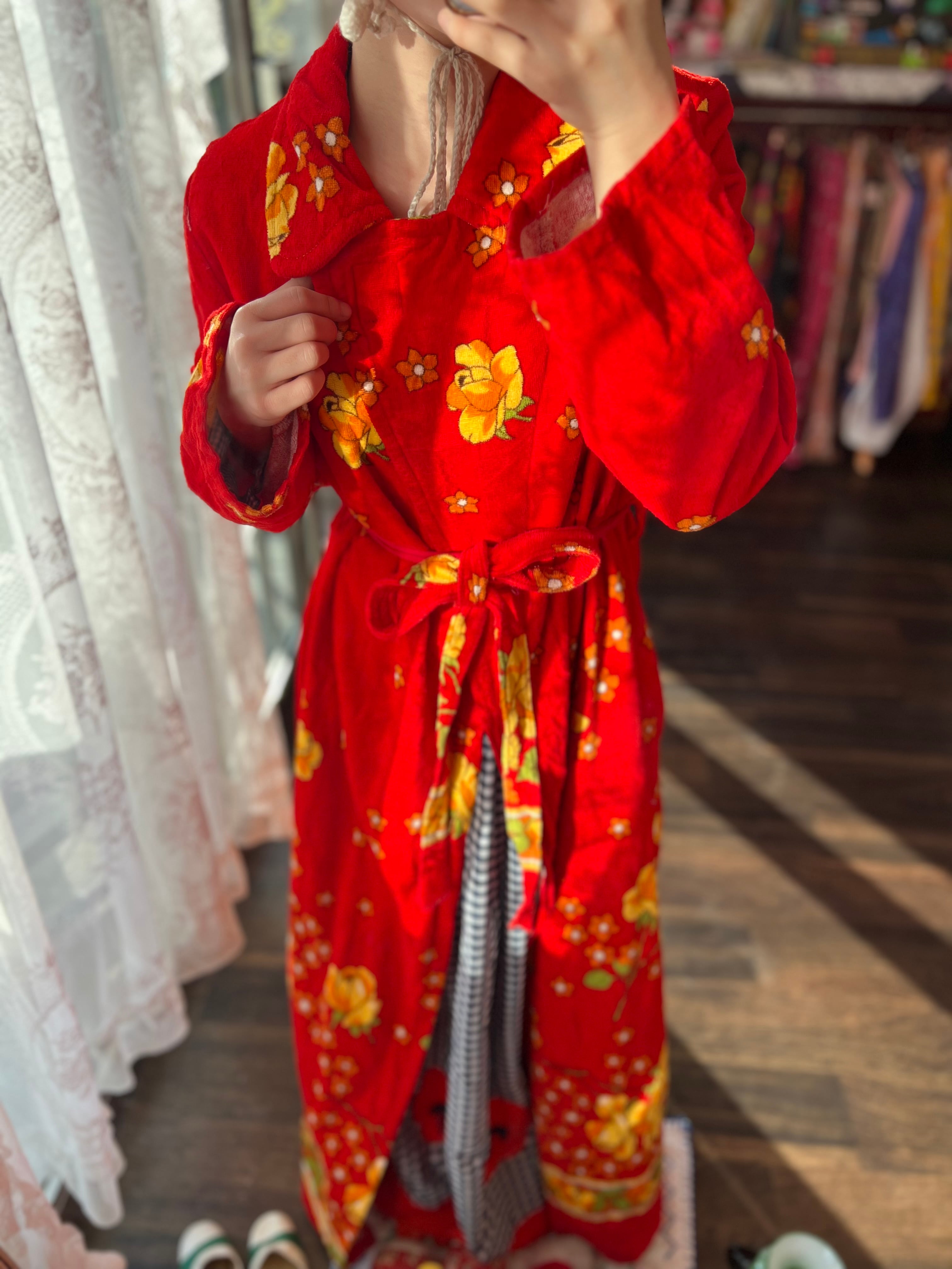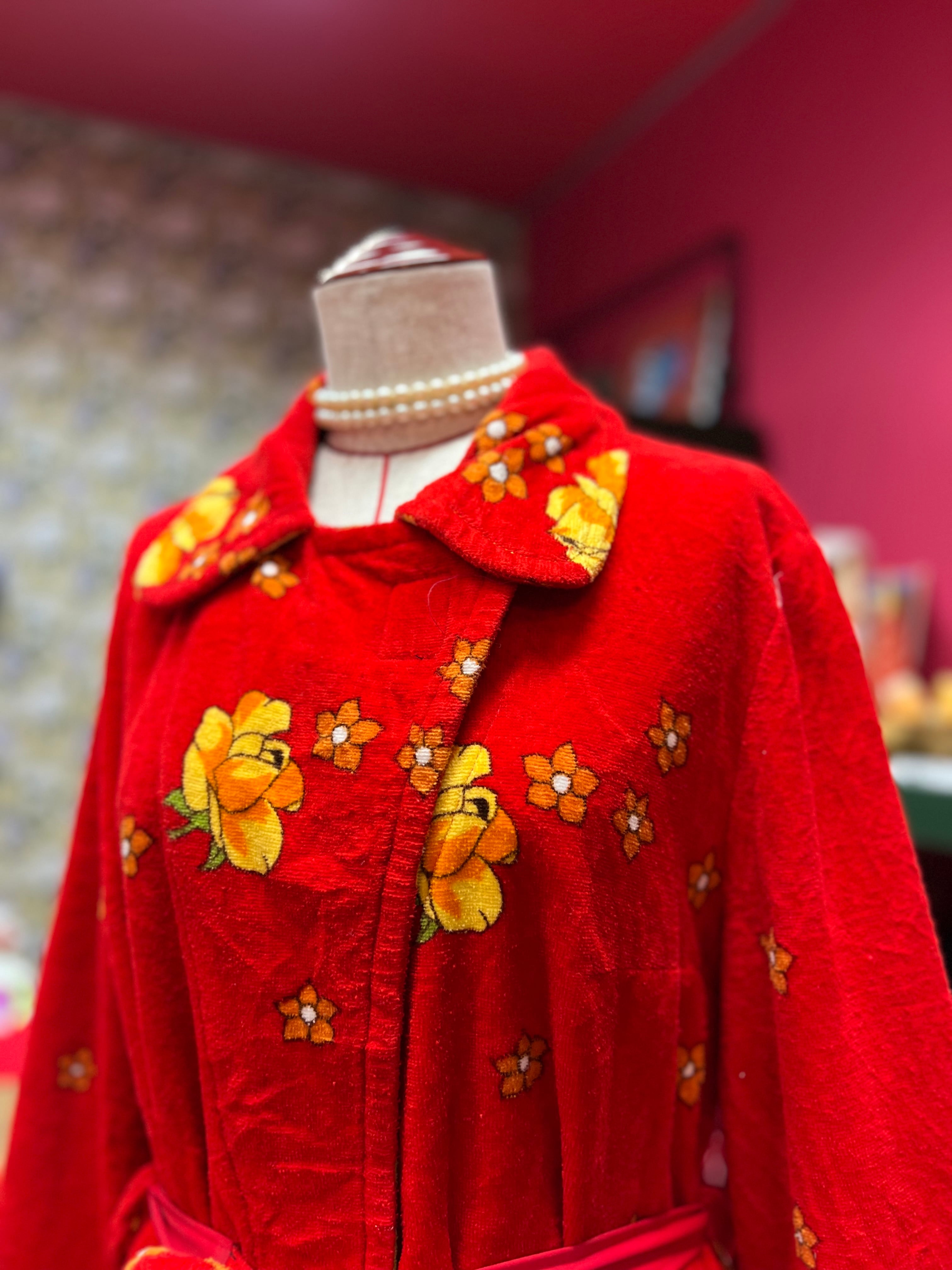 レトロなお花のパイルガウンドレス