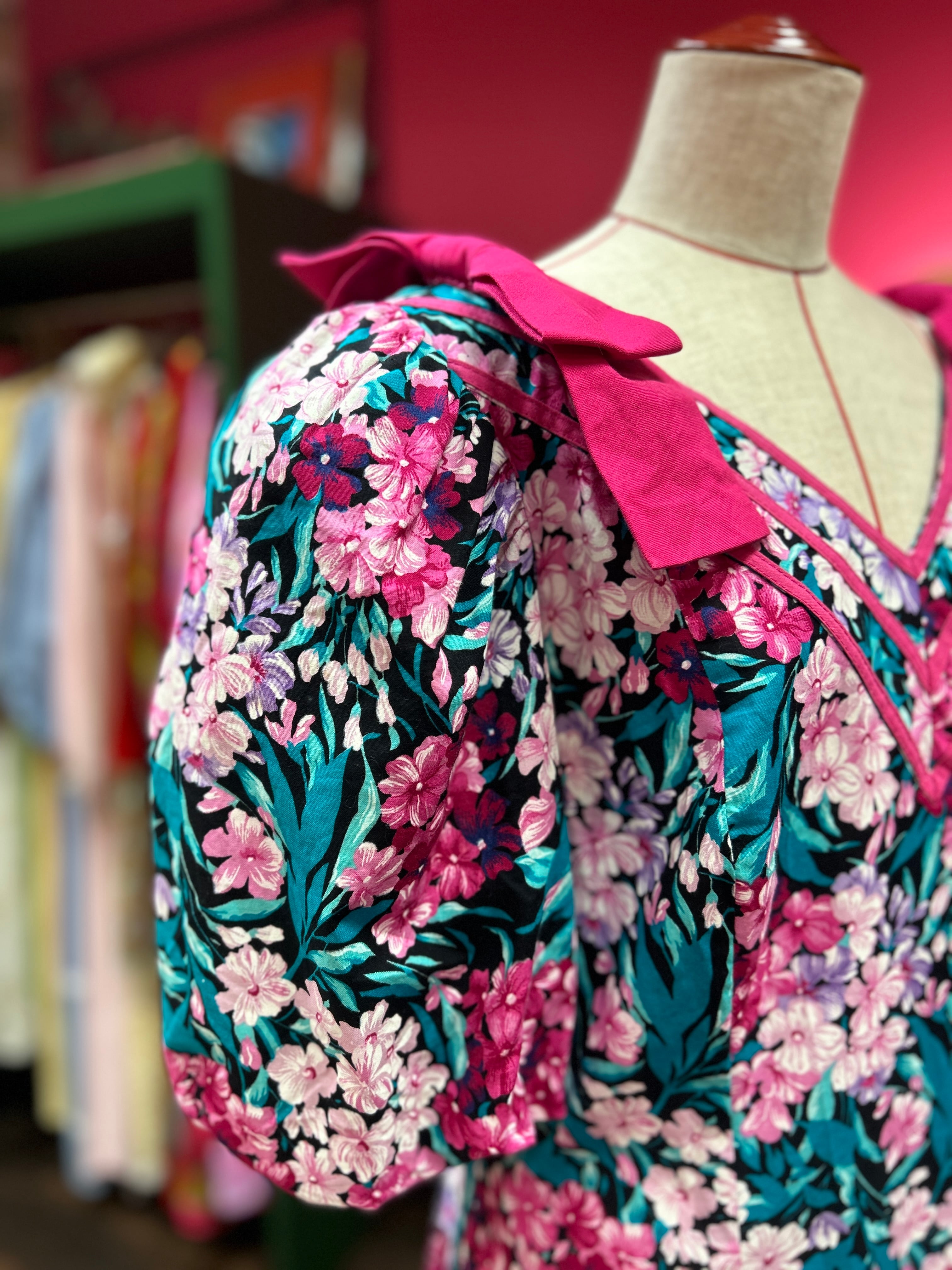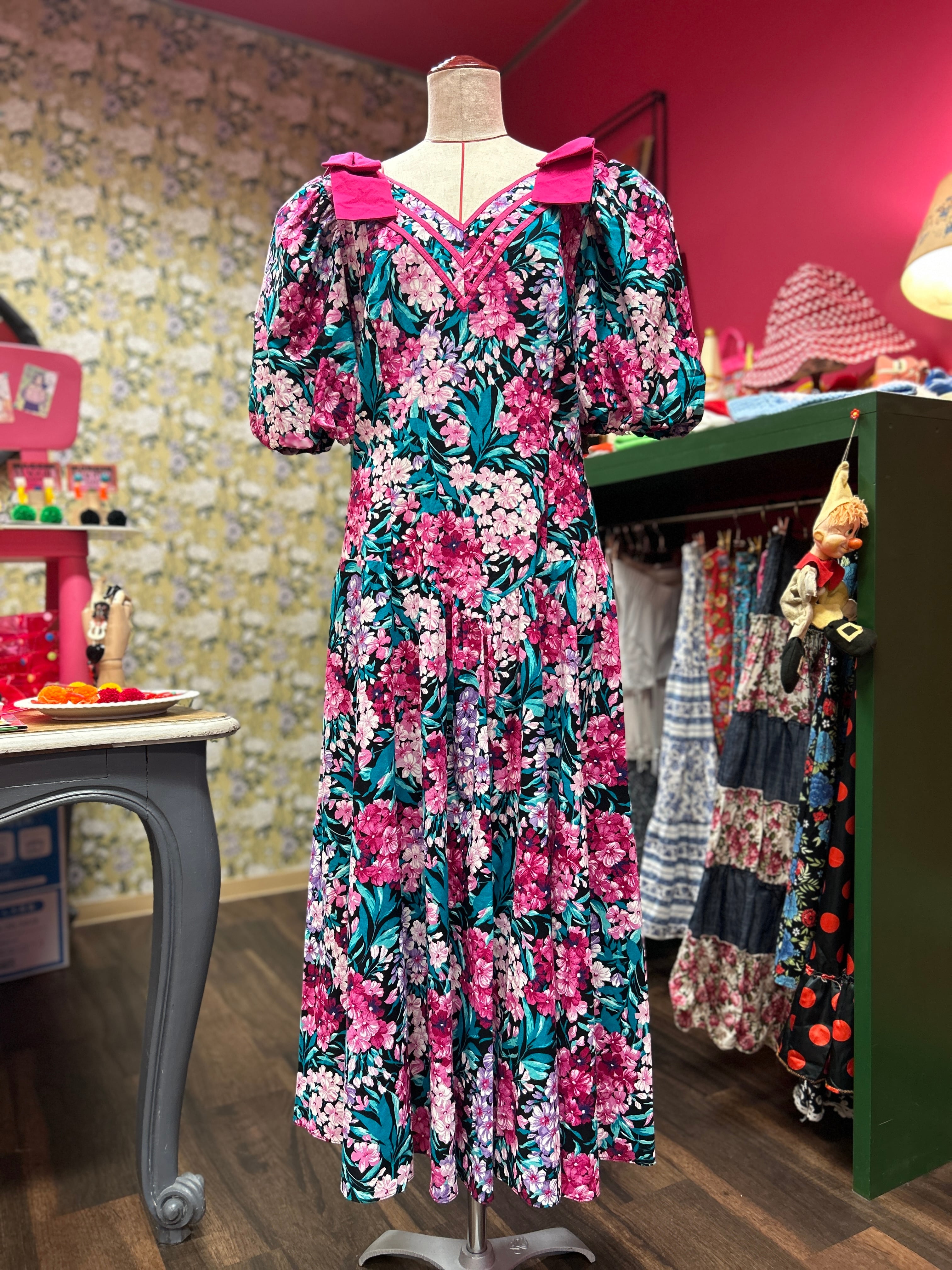 レトロピンクな花柄ドレス