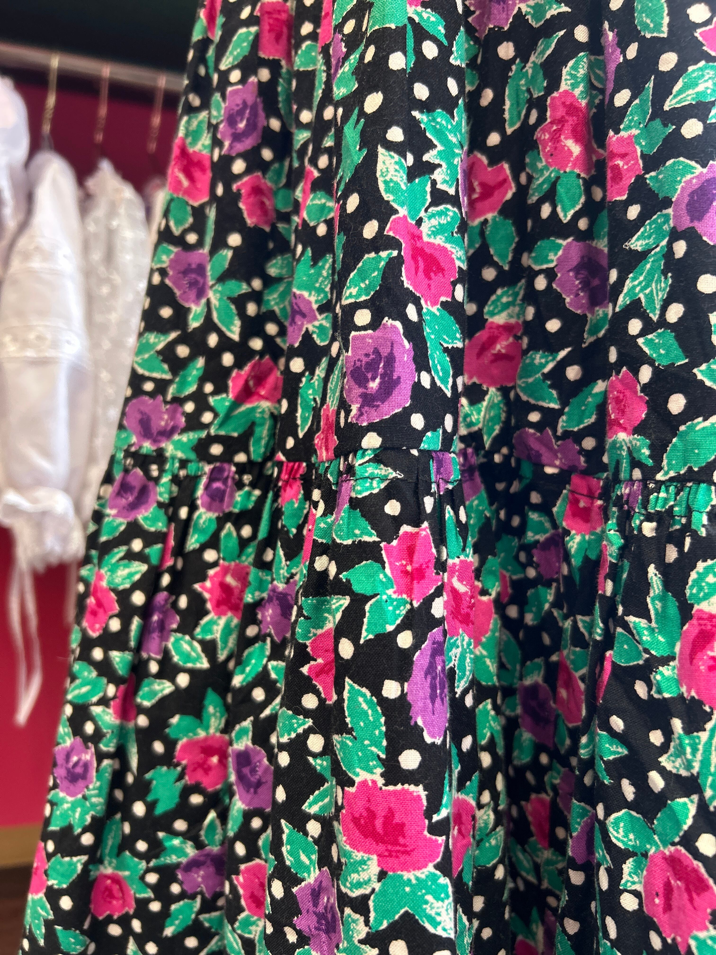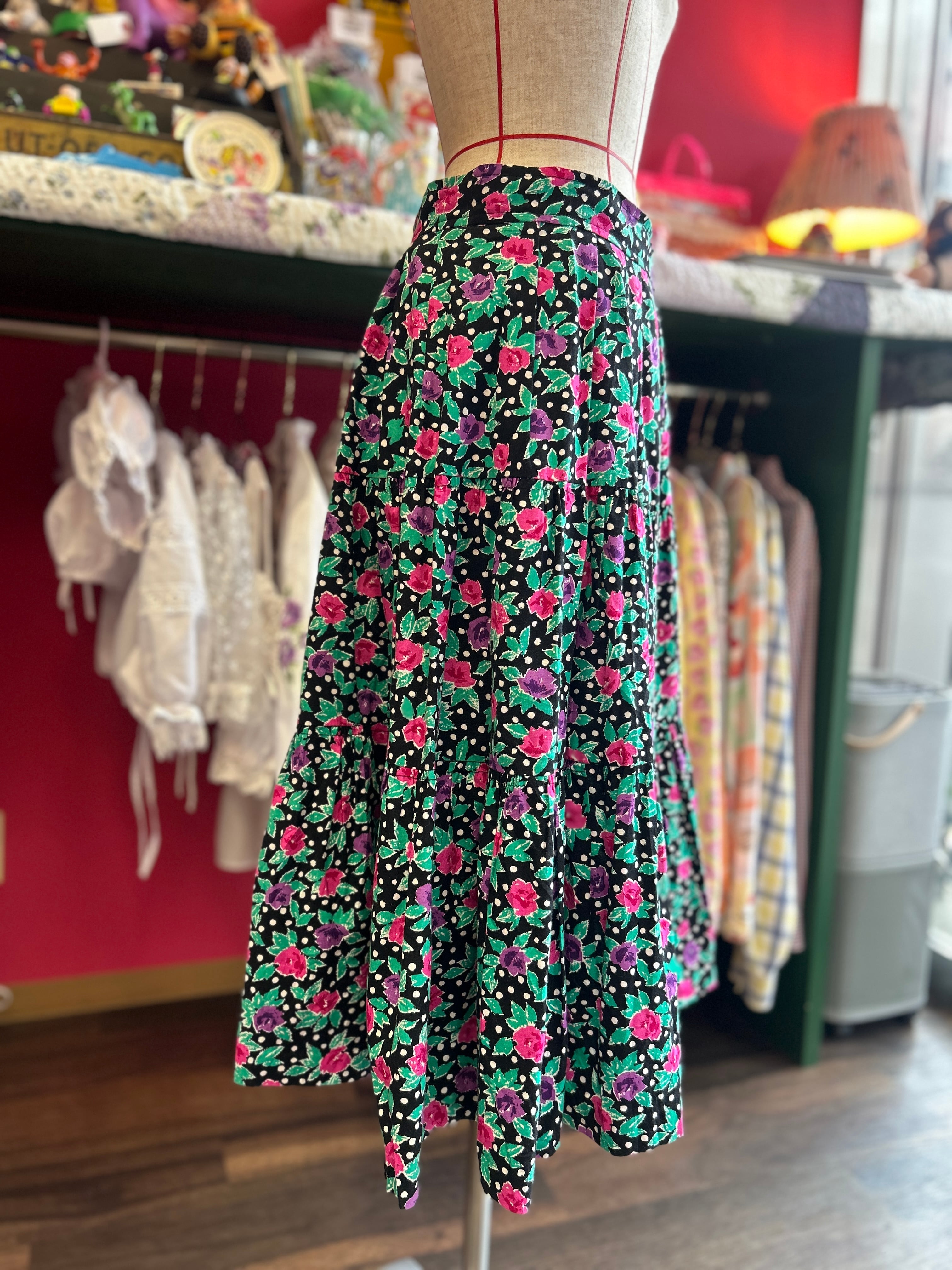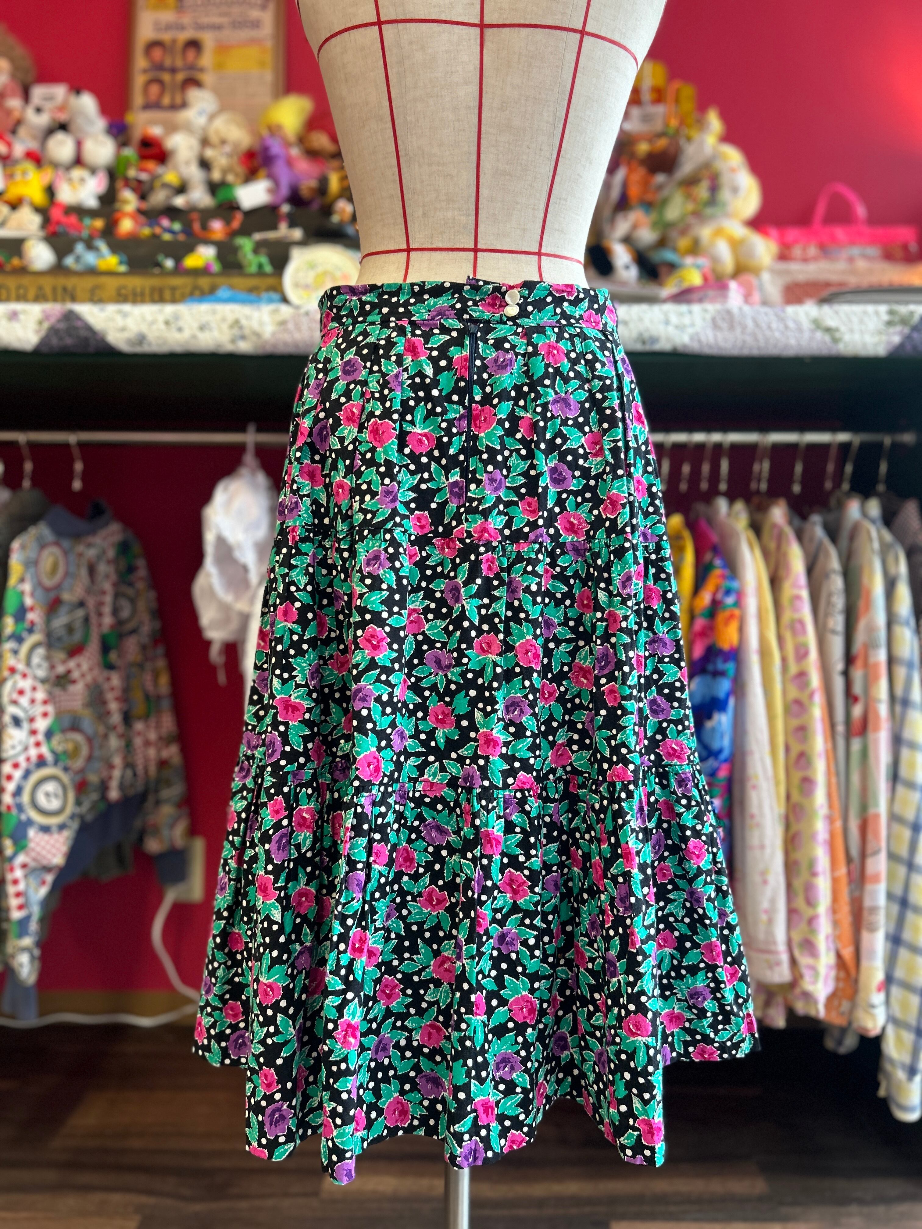 モノクロドットに咲いたお花畑スカート