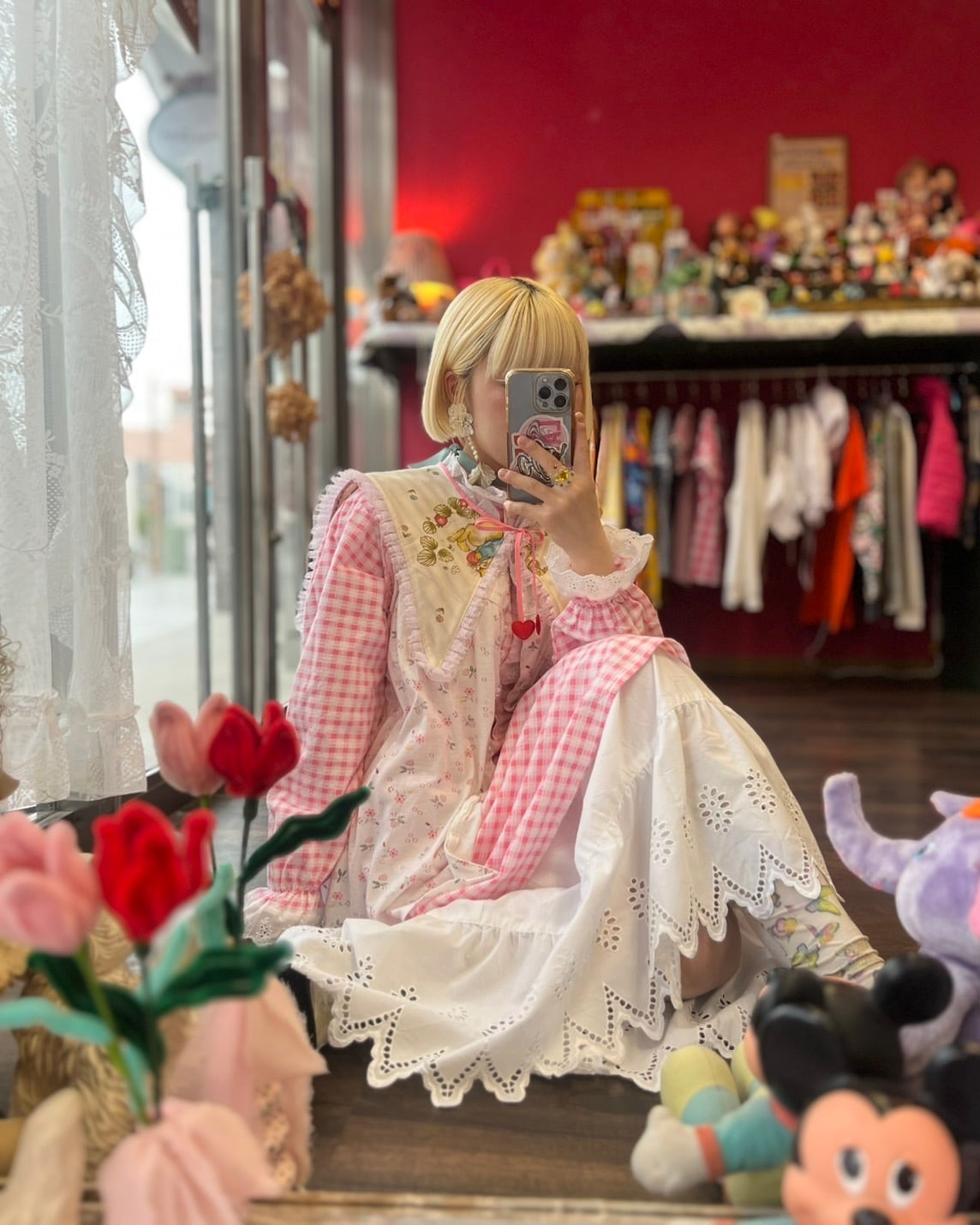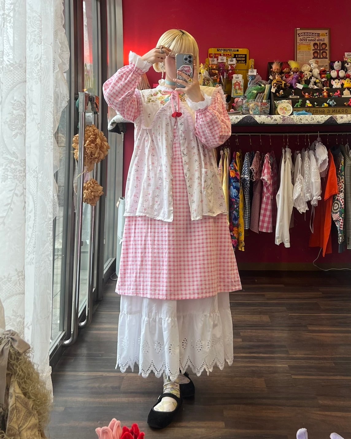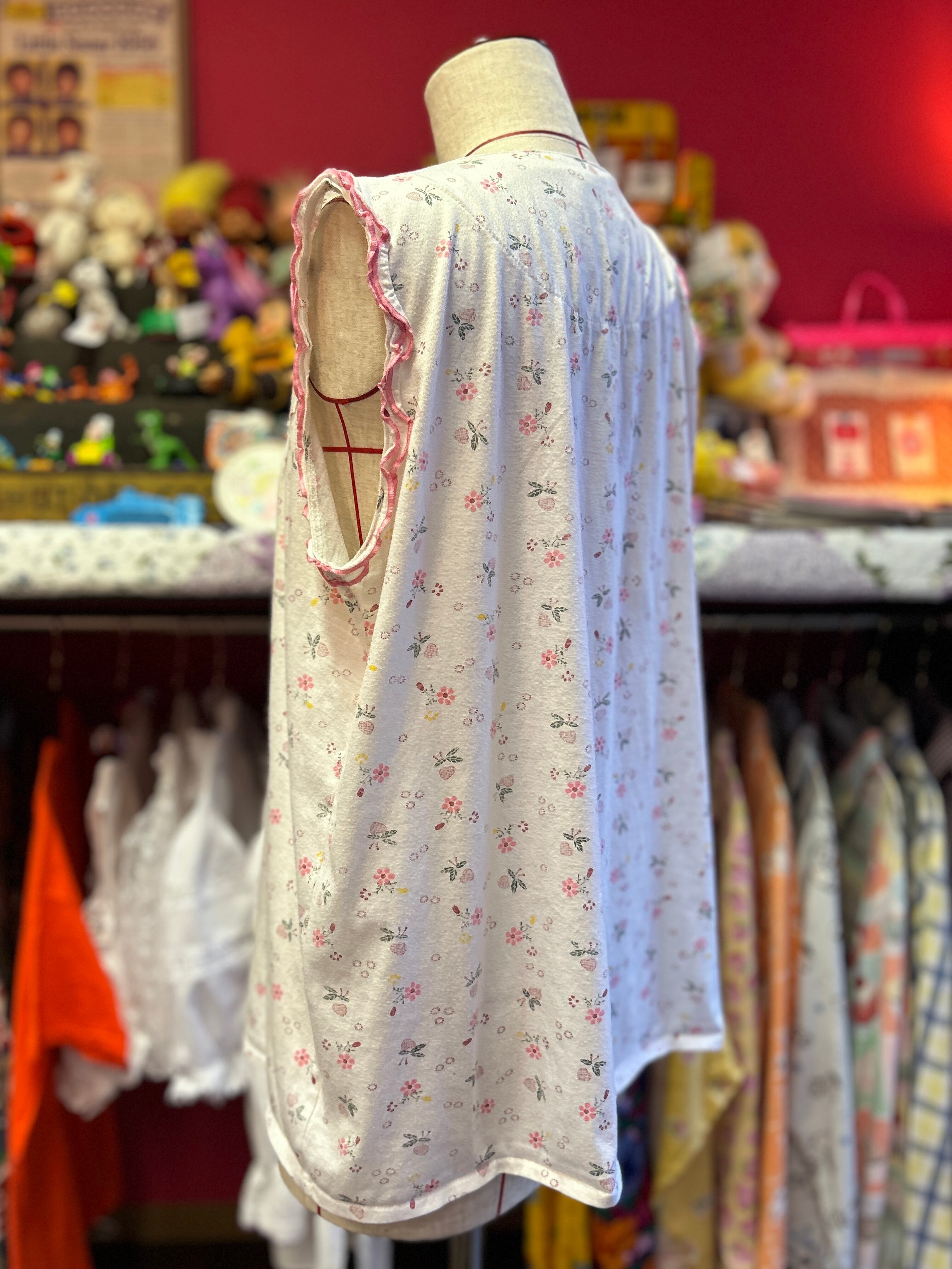 小花柄とレースが可愛いキッチンブラウス